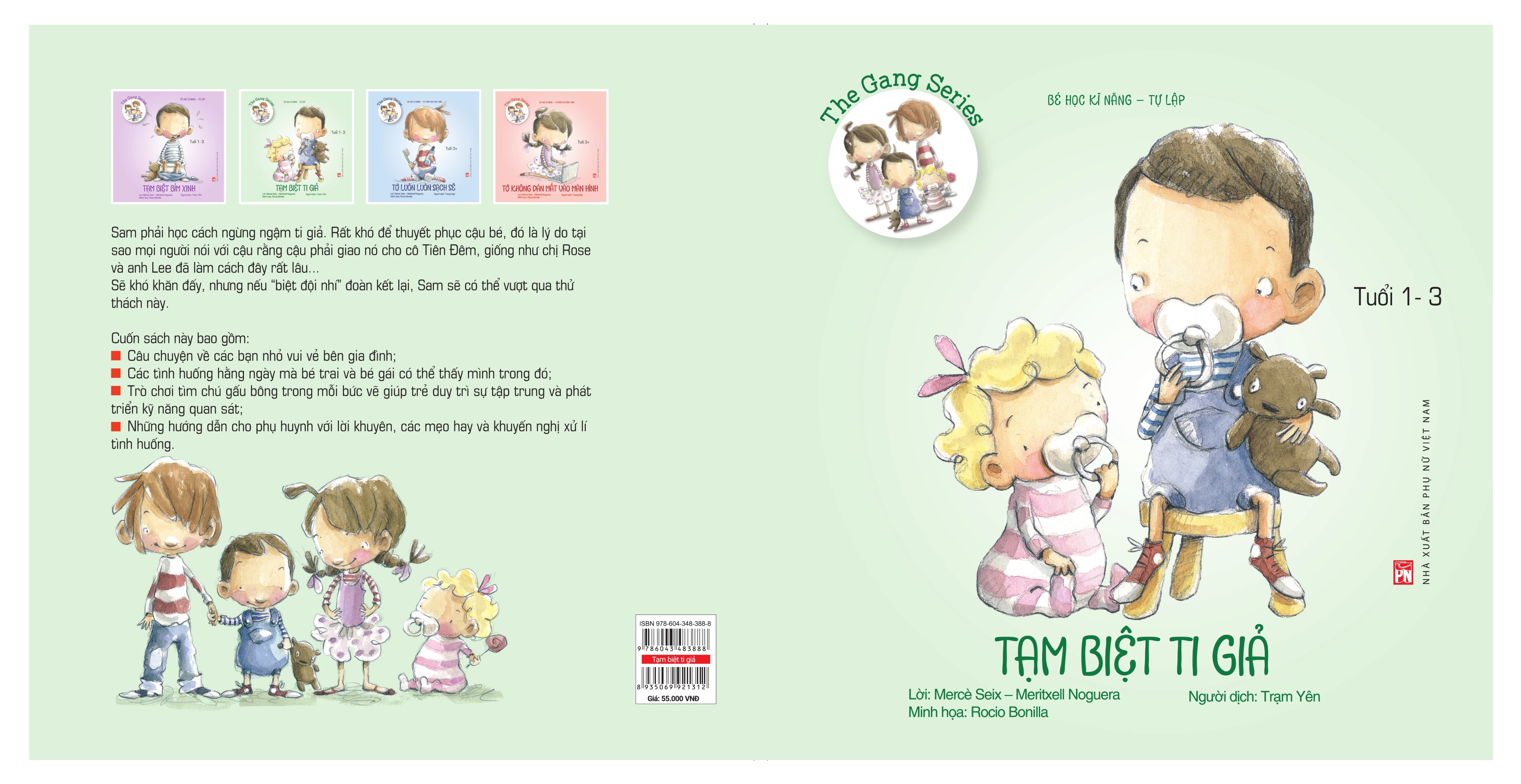 Bộ sách Bé học kĩ năng gồm 4 cuốn Tạm biệt ti giả, Tạm biệt bỉm xinh, Tớ luôn luôn sạch sẽ, Tớ không dán mắt vào màn hình. Mỗi cuốn sách trình bày những nội dung tưởng chừng đơn giản, như làm thế nào giúp con ngưng dùng ti giả, làm thế nào giúp bé bỏ bỉm, tập ngồi bô nhưng hóa ra lại vô cùng thiết thực.