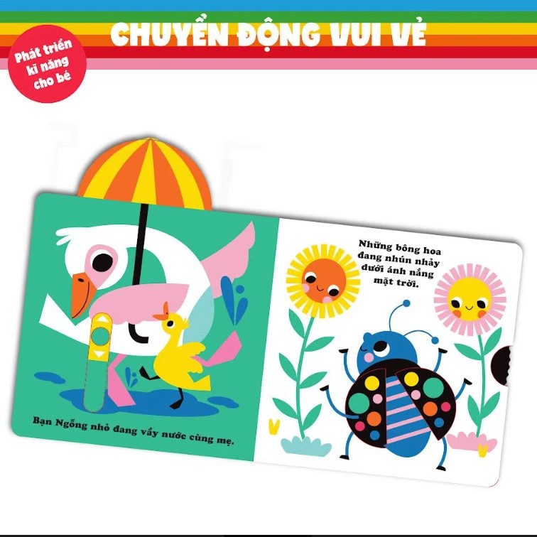 Cuốn sách đưa bé vào một thế giới đầy màu sắc, nơi bé được khám phá 10 loại chuyển động vui nhộn khác nhau. Từ những chuyển động đơn giản như vẫy tay, giơ chân đến những chuyển động phức tạp hơn như nhảy múa, lăn tròn, cuốn sách sẽ giúp bé rèn luyện khả năng phối hợp tay chân, phát triển các giác quan và tăng cường sự vận động.