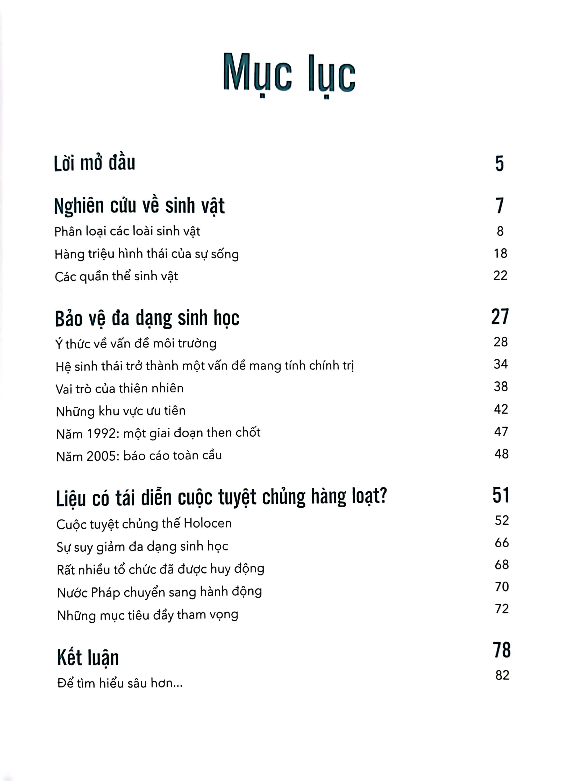 Thế Giới Tương Lai - Đa Dạng Sinh Học Khoảng 1 triệu loài sinh vật như côn trùng, động vật có vú kích thước lớn, các loài chim và các loài thực vật hiện đang đứng trước nguy cơ tuyệt chủng. Sự suy giảm số lượng các loài sinh vật không chỉ là mối đe dọa đối với các loài đó mà còn là mối đe dọa chung tới toàn nhân loại. Nguyên nhân chủ yếu dẫn đến suy giảm đa dạng sinh học xuất phát từ các hoạt động của con người như phá hủy môi trường sống, ô nhiễm, hiện tượng nóng lên toàn cầu. Các quốc gia và bản thân mỗi người chúng ta cần có những hành động gì để chung tay bảo vệ môi trường tự nhiên của các loài sinh vật, cũng như cuộc sống của chính chúng ta? Hãy cùng tìm hiểu trong Thế Giới Tương Lai - Đa Dạng Sinh Học! Bộ sách Thế Giới Tương Lai đặt ra và giải thích những vấn đề thời sự lớn của thế kỉ 21, như vấn đề đô thị hóa, mặt trái của mạng xã hội, bảo tồn sự đa dạng sinh họ Thông qua những hình minh họa tuyệt đẹp cùng nội dung ngắn gọn, súc tích, bộ sách sẽ giúp các bạn đọc trẻ tuổi hiểu thêm nhiều điều thế giới mình đang và sẽ sống, nắm bắt được những cơ hội và thách thức trong tương lai. Sách dành cho lứa tuổi thiếu niên.
