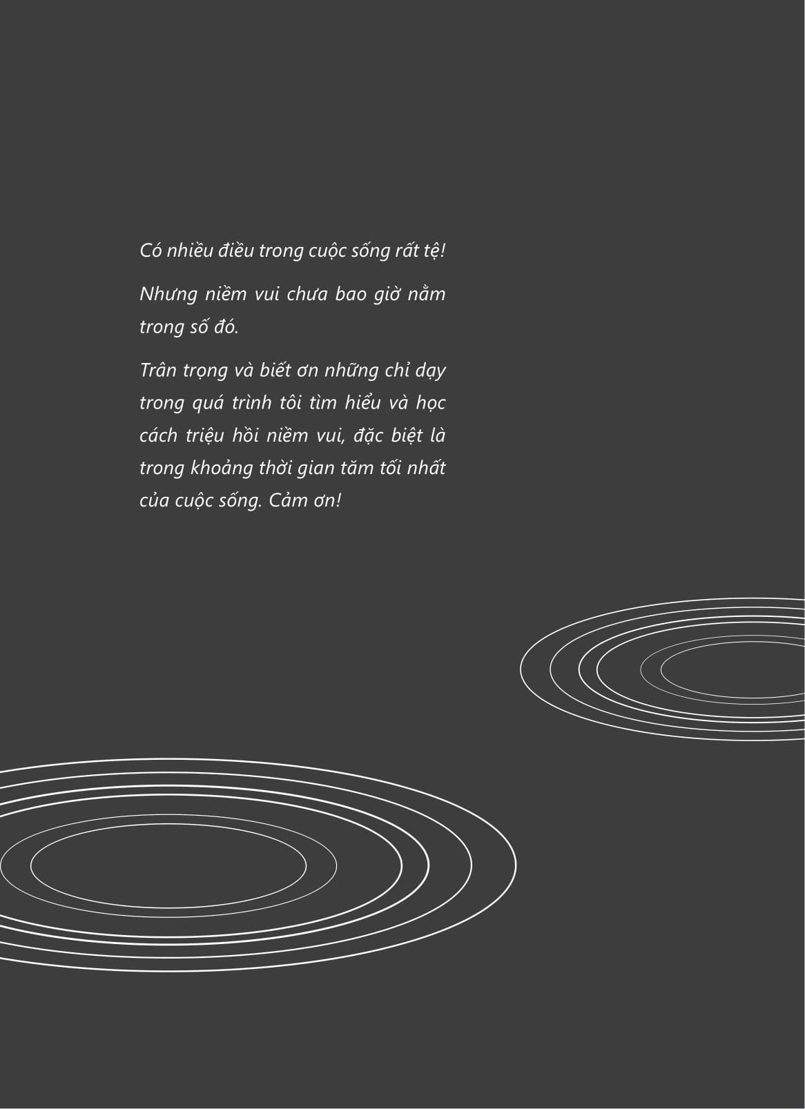 Cuốn sách này dành tặng cho những người theo đuổi sứ mệnh cuộc đời mình. Hi vọng bạn sẽ không chỉ sống một cuộc đời trọn vẹn mà còn tận hưởng hanh phúc trên suốt