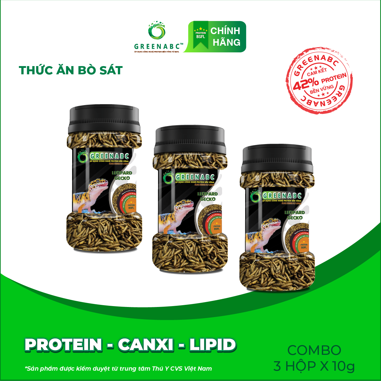 GREENABC - THỨC ĂN DÀNH CHO THẰN LẰN DA BÁO - BỔ SUNG DINH DƯỠNG PROTEIN - CANXI - LIPID GREENABC là thức ăn bổ dưỡng dành cho THẰN LẰN DA BÁO. Đặc biệt sản phẩm GREENABC được sản xuất theo phương pháp Áp dụng công nghệ PROTEIN bền vững rất giàu PROTEIN – CANXI – LIPID có trong BSFL, đã được Mỹ (AAFCO) và EU chấp nhận đưa vào công thức cho ngành sản xuất thức ăn dành cho vật nuôi. Sản phẩm GREENABC cung cấp các giá trị dinh dưỡng bền vững cho vật nuôi, giúp cho Thằn Lằn Da Báo: