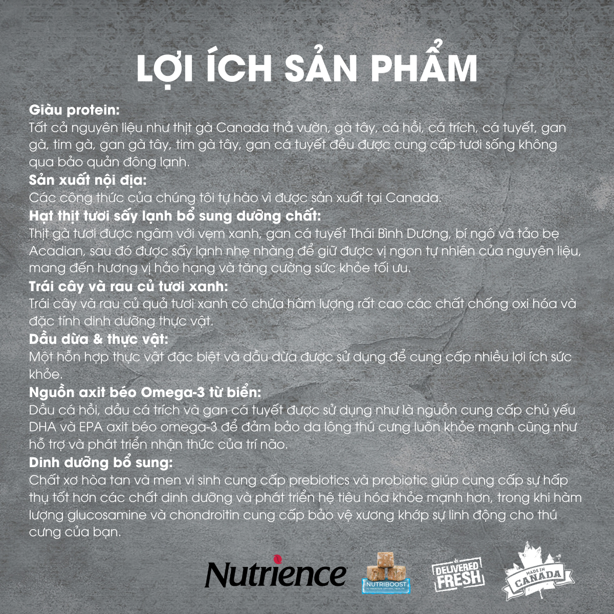 - Thức Ăn Cho Chó Nhỏ Trưởng Thành Nutrience Original - Thịt Gà, Rau Củ Và Trái Cây Tự Nhiên là một công thức dinh dưỡng toàn diện và cân bằng được Nutriencce nghiên cứu và