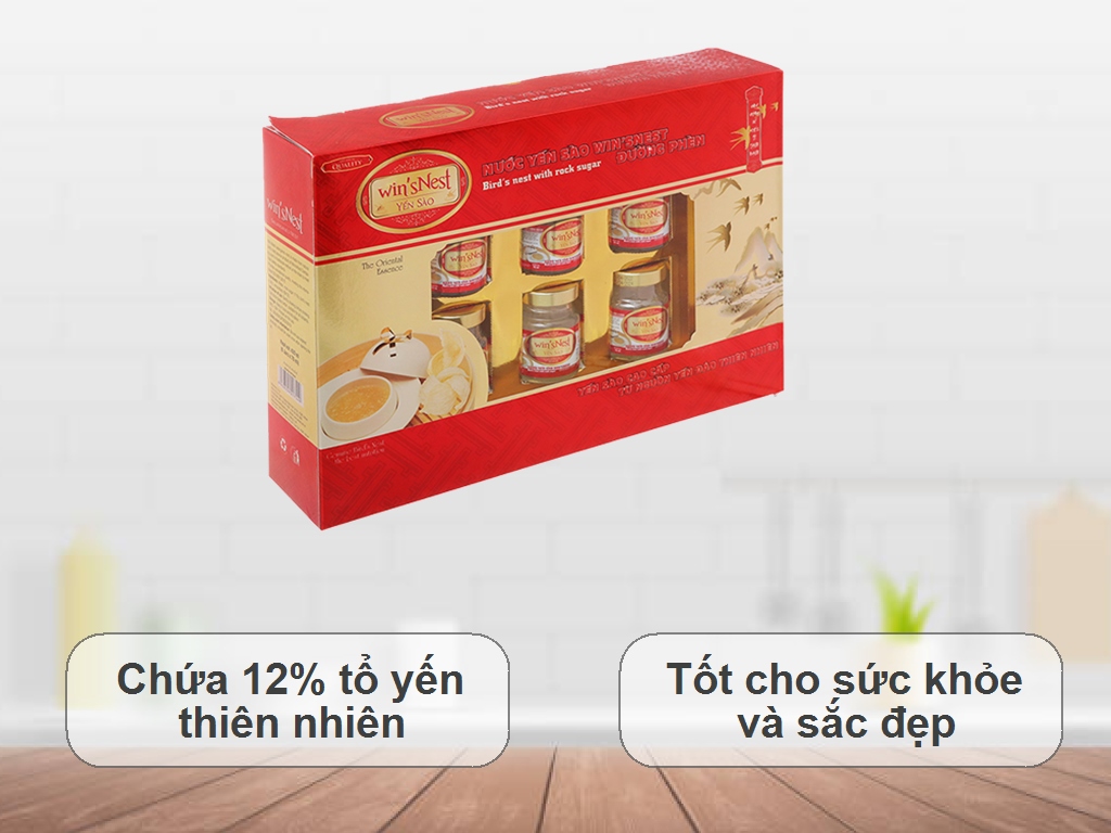 Nước yến sào win'sNest đường phèn yến sào (12%), đường phèn (11%) giúp bồi bổ cơ thể, tăng sức đề kháng, phục hồi sức khỏe, giảm mệt mỏi, ổn định thần kinh, trí nhớ, kích thích tiêu hóa, phục hồi sức khỏe nhanh chóng trong thời gian dưỡng bệnh, dùng thường xuyên chống lão hóa