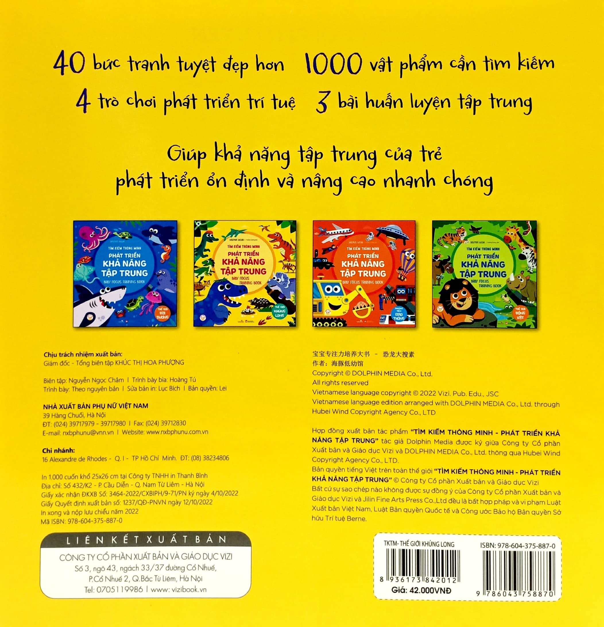 Tìm Kiếm Thông Minh Phát Triển Khả Năng Tập Trung - Thế Giới Khủng Long Thêm cuốn sách tranh đẹp từ ngoài vào trong, vô cùng sinh động TÌM KIẾM THÔNG MINH PHÁT TRIỂN KHẢ NĂNG TẬP TRUNG chủ đ...