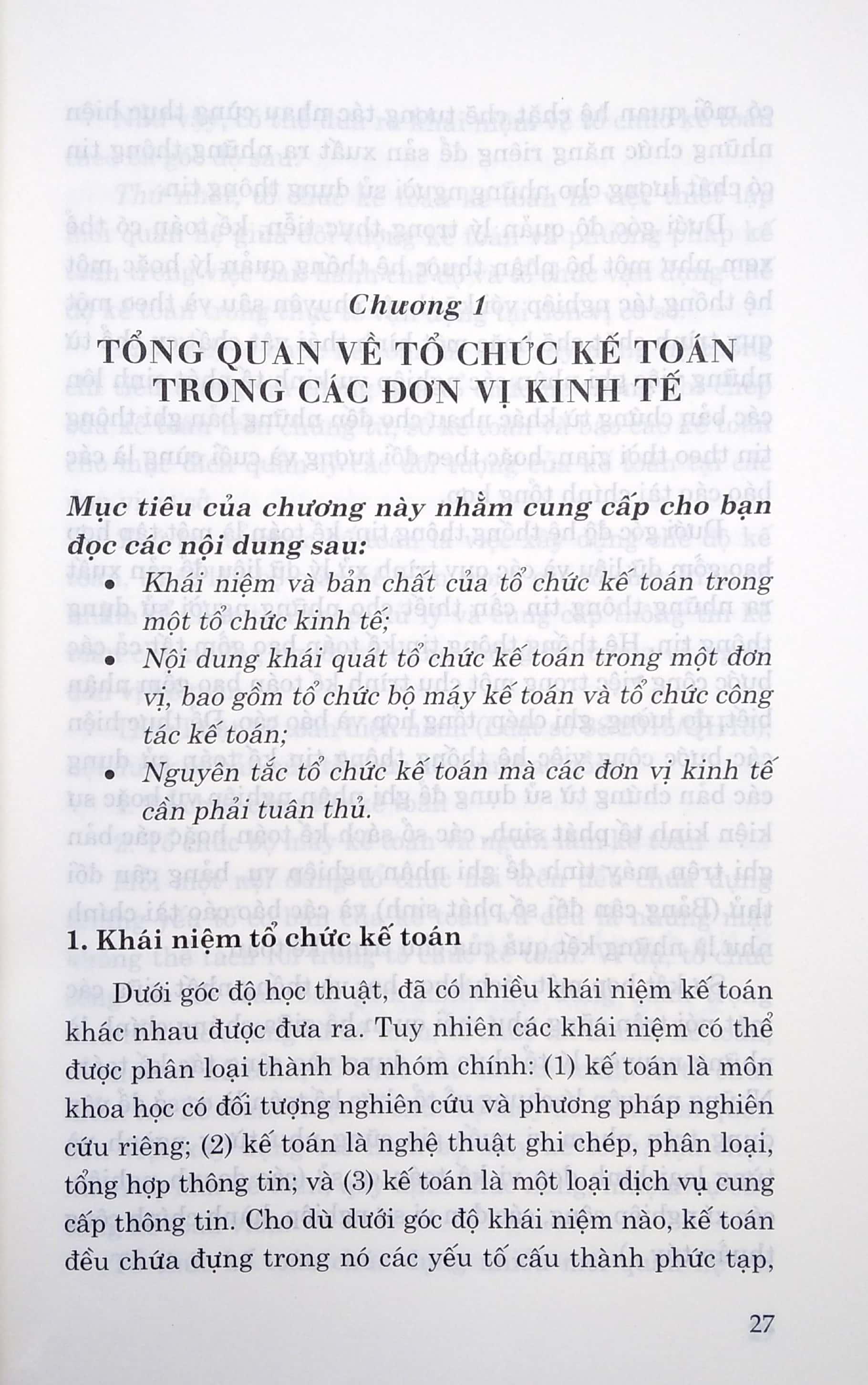 Trong phần khái quát chung về tổ chức kế toán tác giả giới thiệu các vấn đề chung như khái niệm, bản chất, nguyên tắc tổ chức kế toán trong các đơn vị. Cuốn sách cũng giới thiệu các nội dung tổ chức chứng từ, tổ chức tài khoản, tổ chức sổ kế toán và tổ chức báo cáo kế toán. Phần này được trình bày trong các chương từ 1 đến 5.