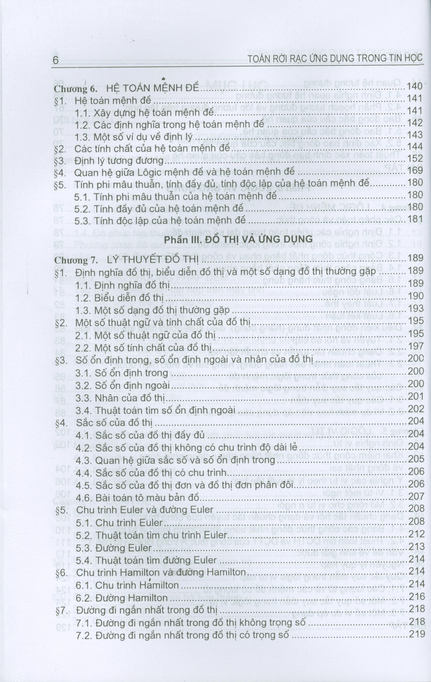 - Phần IV. Ngôn ngữ hình thức. Cuốn Toán rời rạc ứng dụng trong tin hoc trình bày các vấn đề toán học cơ bản nhất, nhưng lại hết sức thiết yếu và cần thiết đối với những ai muốn có được các kiến thức tin học vững chắc. Cuốn sách giúp người học hiểu được lý thuyết thấu đáo, rèn luyện tư duy khoa học, kỹ năng tính toán và khả năng vận dụng toán học vào giải quyết vấn đề, kích thích niềm say mê học tập và từ đó nâng cao kỹ năng thực hành, tư duy sáng tạo khi học các môn học cơ sở và chuyên ngành Công nghệ thông tin tiếp theo. Cuốn sách này cũng rất bổ ích cho việc ôn thi tuyển sinh sau đại học ngành Công nghệ thông tin được tổ chức hàng năm ở Đại học Quốc gia Hà Nội.