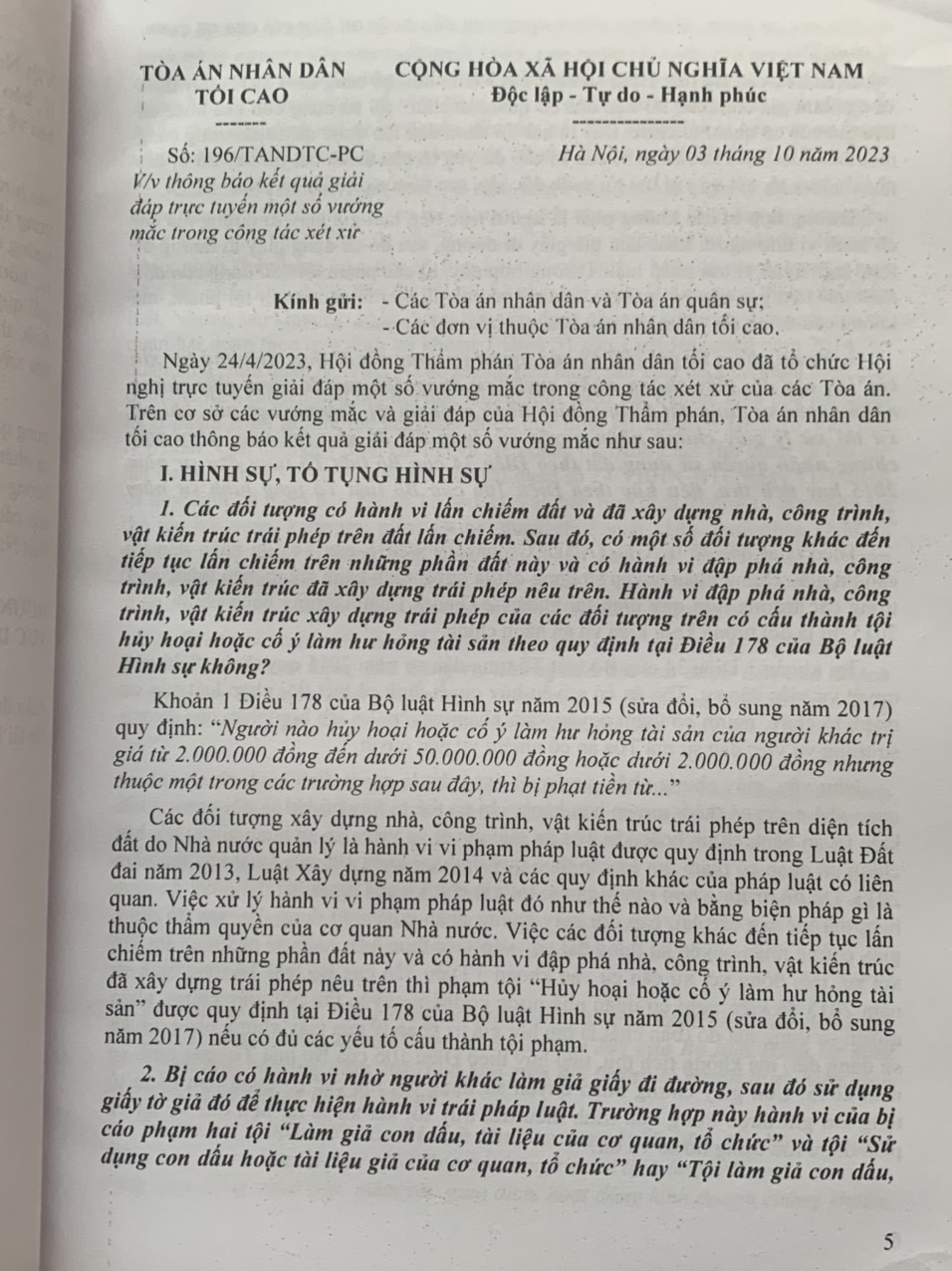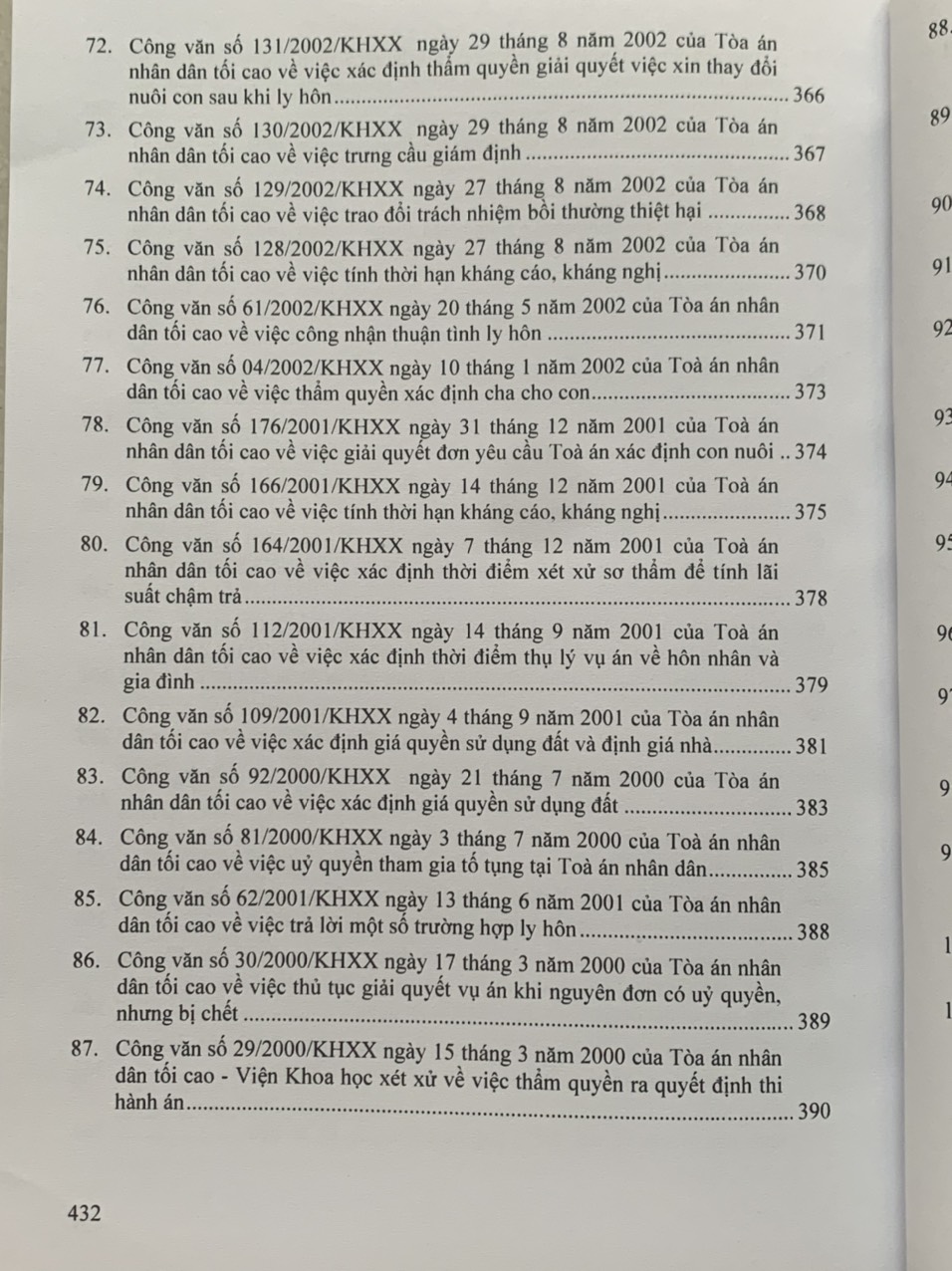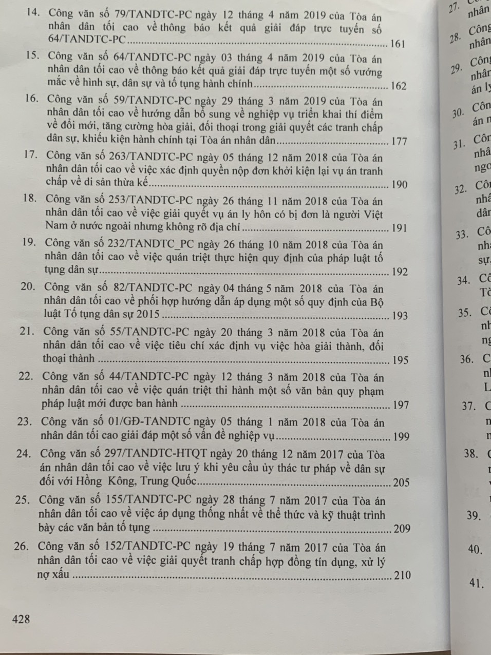 Tổng hợp công văn của Tòa án nhân dân tối cao, hướng dẫn nghiệp vụ, giải đáp vướng mắc trong lĩnh vực dân sự, tố tụng dân sự