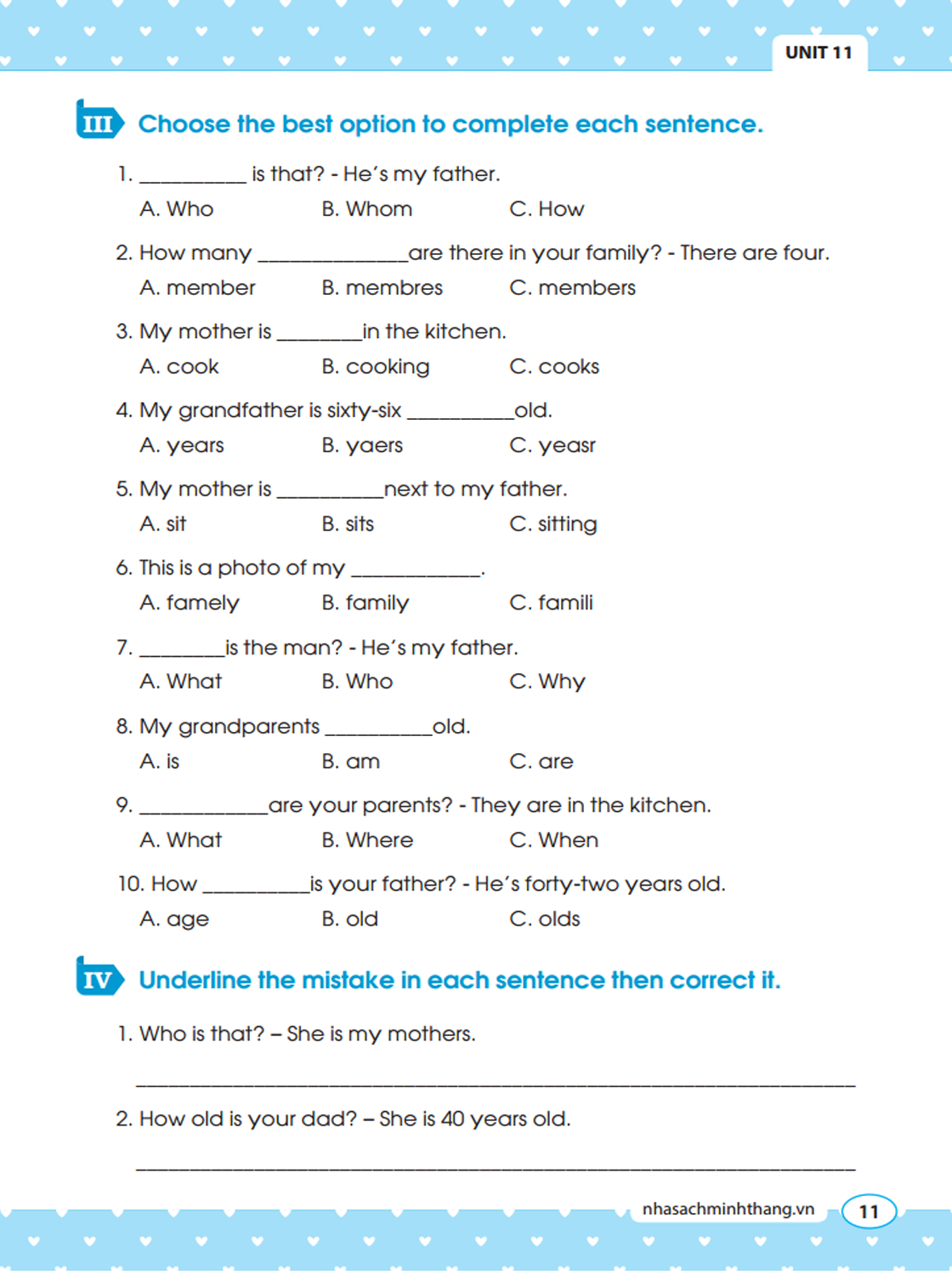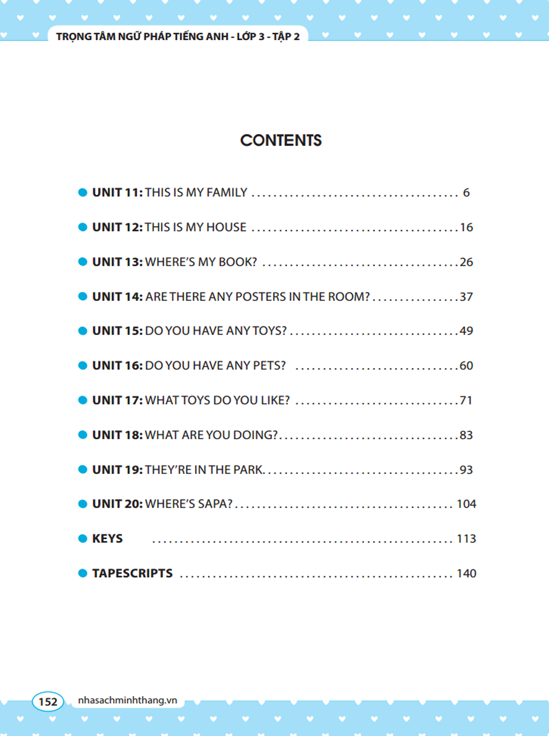 Trọng tâm ngữ pháp Tiếng Anh 3 tập 2: Unit 11 – Unit 20