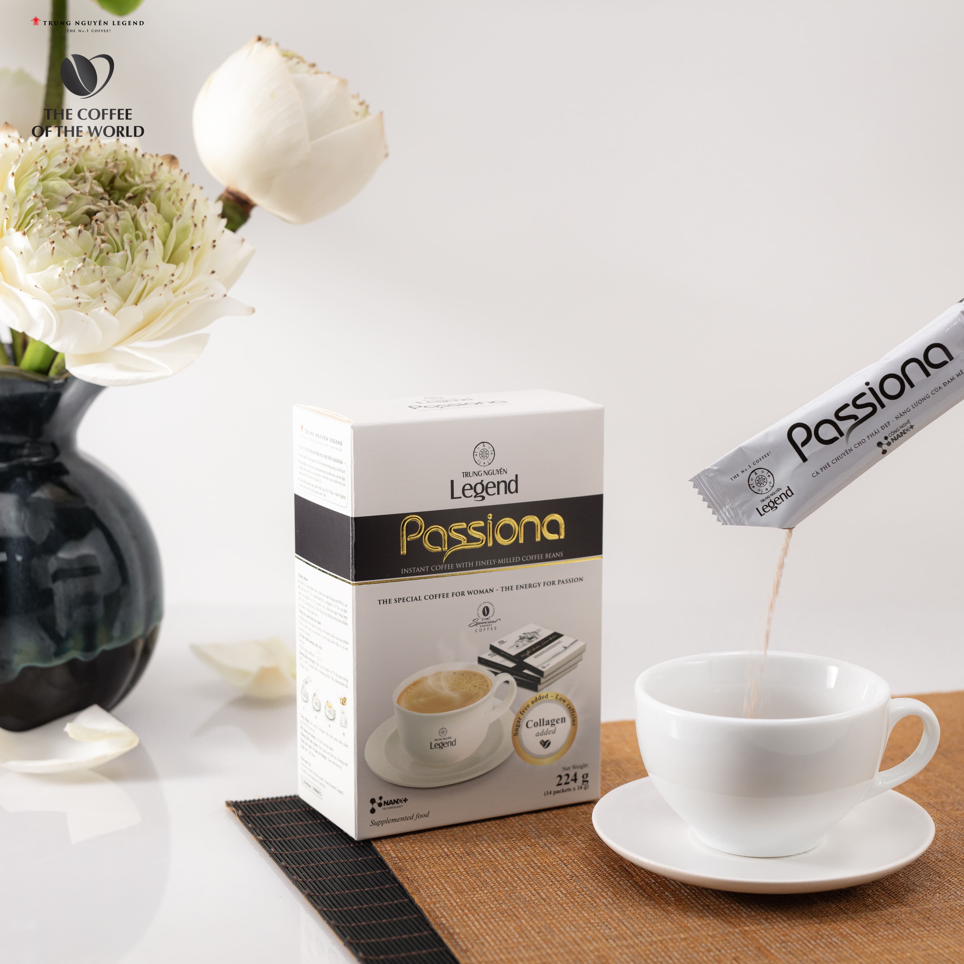 TRUNG NGUYÊN LEGEND OFFICIAL TRÂN TRỌNG GIỚI THIỆU SẢN PHẨM: CÀ PHÊ PASSIONA HÒA TAN 4IN1 - HỘP 14 GÓI 16GR   THÔNG TIN CHUNG: Cà phê Passiona – dòng cà phê cho nữ được