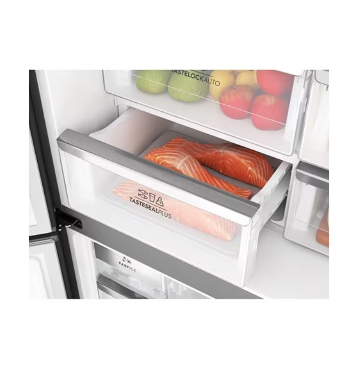 Đặc điểm nổi bật - Dung tích 510 lít, thích hợp cho gia đình 4-5 người. - Kiểu dáng âm tường, làm tăng vẻ đẹp cho không gian bếp. - Cánh cửa mở rộng 120 độ, dễ dàng lấy thực phẩm. - Tự động làm đá, mang lại những viên đá mát lạnh nhanh chóng. - Ngăn cấp đông mềm Prime Fresh giúp thực phẩm tươi ngon đến 7 ngày. - Không khí trong tủ luôn sạch nhờ Ag+ loại bỏ vi khuẩn. Tổng quan - Kiểu tủ:Multi Door - 4 cánh - Dung tích sử dụng:510 lít - 4 - 5 người - Dung tích tổng:561 lít - Dung tích ngăn đá:195 lít - Dung tích ngăn lạnh:315 lít - Chất liệu cửa tủ lạnh:Mặt thép - Chất liệu khay ngăn lạnh:Kính cường lực - Chất liệu ống dẫn gas, dàn lạnh:Ống dẫn gas bằng Đồng & Thép - Lá tản nhiệt bằng Nhôm - Năm ra mắt:2024 - Sản xuất tại:Trung Quốc