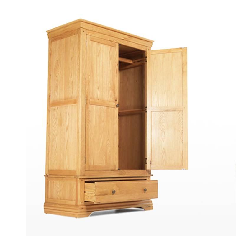 Thiết kế mang phong cách Pháp cổ điển nhưng lại đáp ứng được các nhu cầu của của cuộc sống hiện đại. Đằng sau những những cánh cửa bản lớn đơn giản là không gian vô cùng rộng rãi để treo đồ dài như quần áo người lớn, trong khi phía dưới vẫn còn thênh thang để được nhiều loại quần áo khác. Các ngăn kéo dùng để chứa quần áo gấp gọn hoặc các đồ dùng phòng ngủ. Tủ được làm từ gỗ sồi trắng Mỹ nhập khẩu, có giá trị kinh tế cao và được chế tác hoàn toàn thủ công bởi những người thợ lành nghề. Toàn bộ bề mặt được sơn phủ PU, giữ nguyên được vẻ đẹp của vân gỗ và đồng thời bảo vệ tủ sử dụng lâu bền trong các điều kiện khí hậu khác nhau. Mái vòm và những đường cong duyên dáng của tủ rất hợp với những đồ nội thất khác trong bộ sưu tập Victoria.