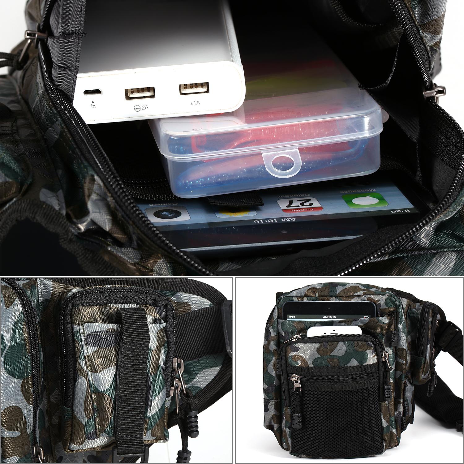 Features: Made of high quality chinlon and nylon material, water-resistant and wear-resistant. Durable PP fishing lure box with split interior space for convenient to storage baits. Adjustable shoulder strap with quick release buckle, convenient and