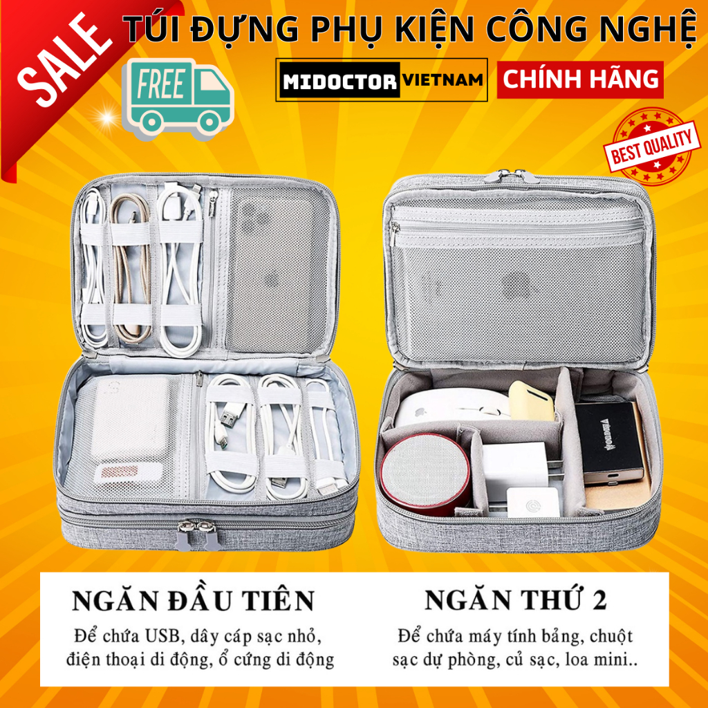 Túi Đựng Phụ Kiện Điện Thoại Máy Tính 2 Ngăn Lớn Cải Tiến Nhiều Ngăn Chống Nước, Chống Sốc Chính Hãng miDoctor