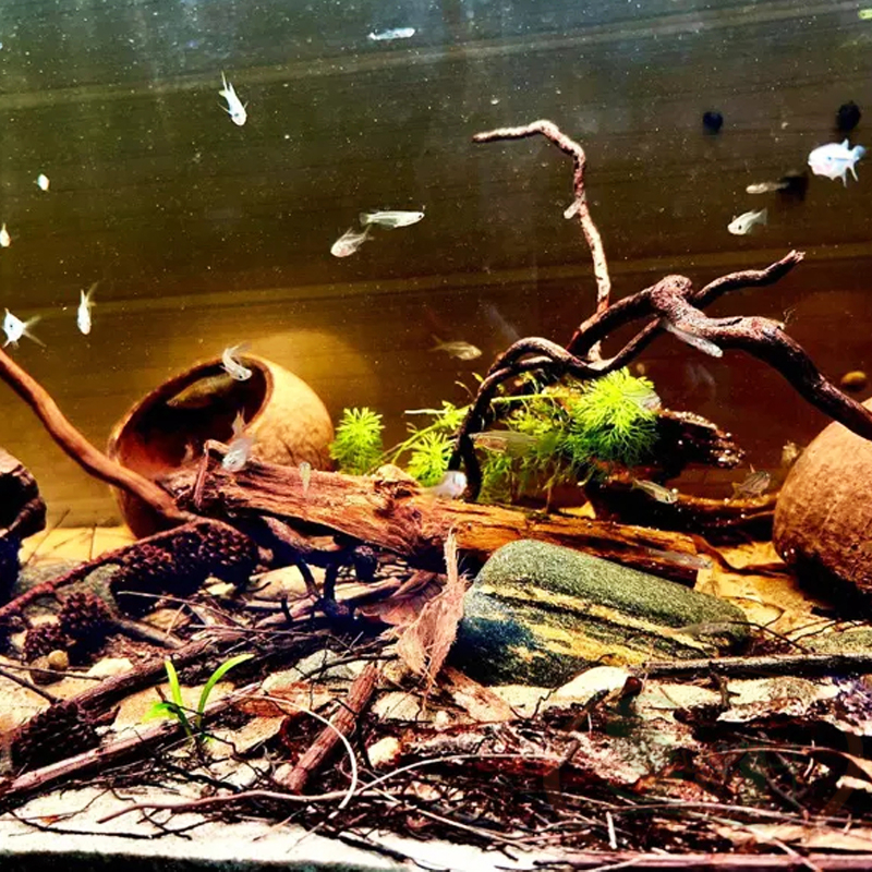 Túi nguyên liệu lá quả khô trang trí bể được khai thác và phân loại kỹ càng... có công dụng tái tạo môi trường tự nhiên tăng cường nét đẹp của bể cá tép biotop, tạo ra một môi trường sống tự nhiên giúp giảm stress, tăng sức đề kháng cho các loại cá tép, giúp chúng thích nghi và phát triển tốt hơn.