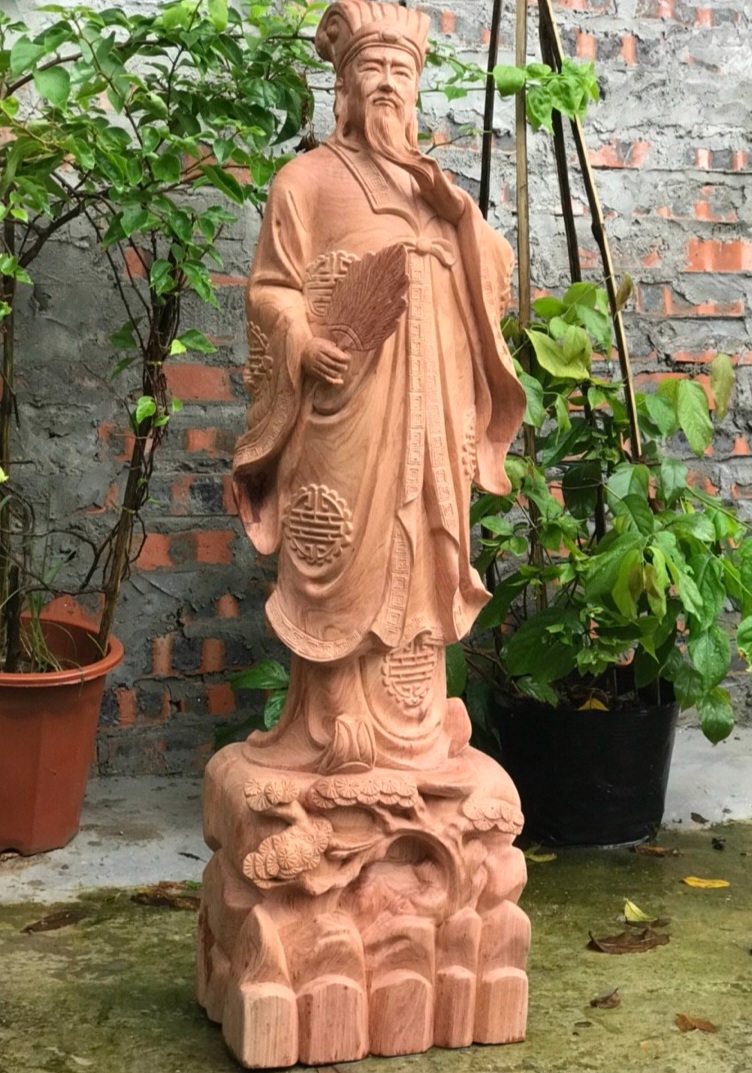 _ Tượng khổng minh gia cát lượng được làm bằng chất liệu gỗ hương đá liền khối tự nhiên 100%