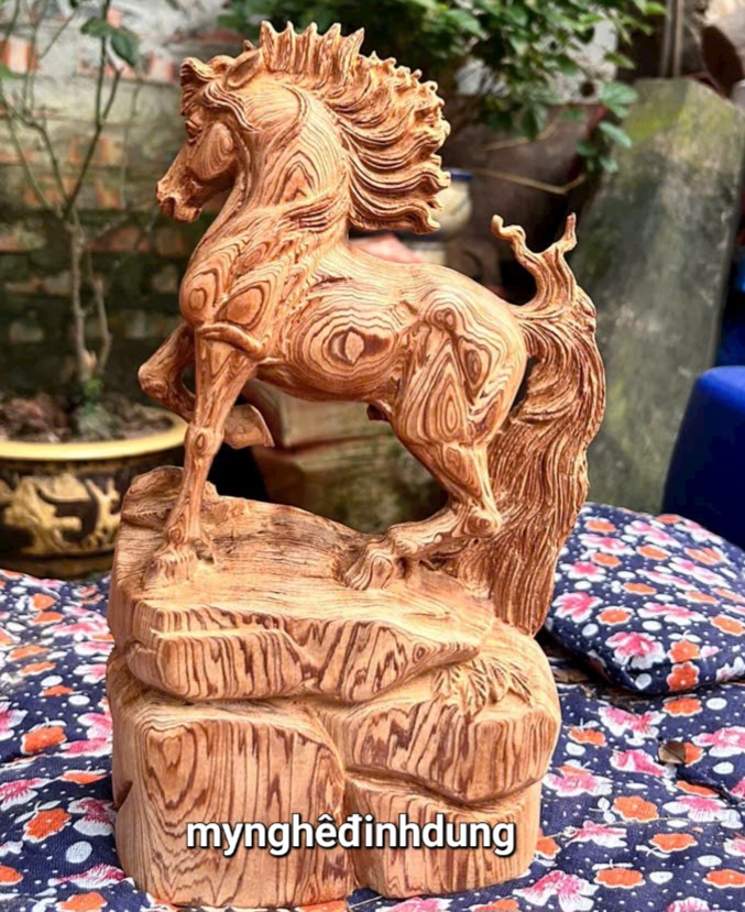 _ Tượng nhất mã thong dong được làm bằng chất liệu gỗ ngọc am liền khối tự nhiên 100%