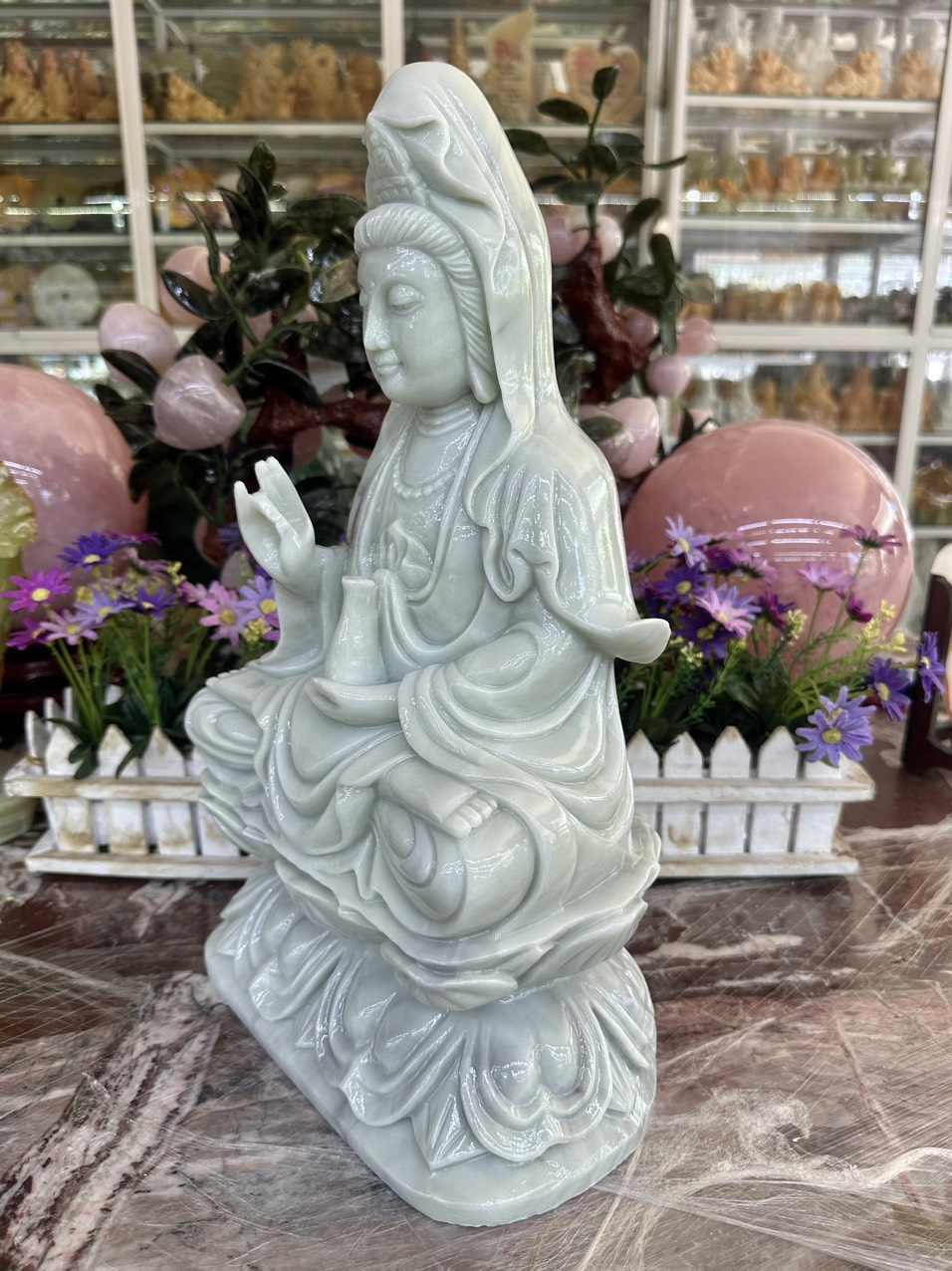 🙏 Tượng Quan Âm Bồ Tát Ngồi Bột Đá Đá Cẩm Thạch 🙏 #phápduyênshop #tuongphat #quantheambotat