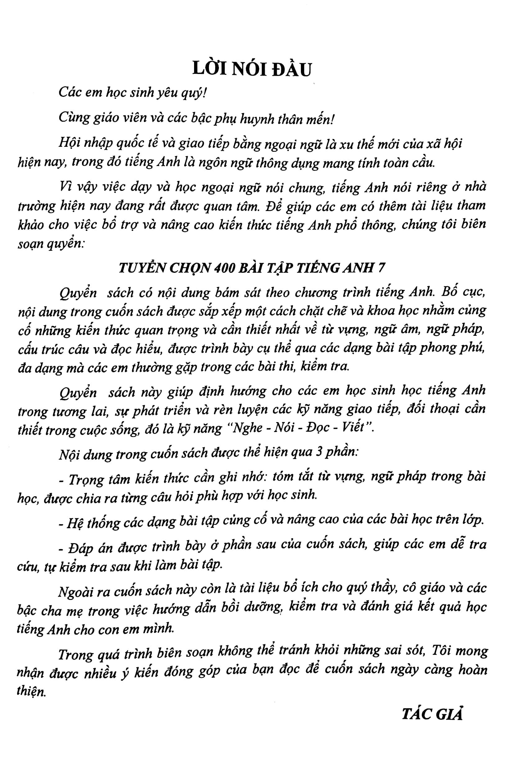 Ngoài ra cuốn sách này còn là tài liệu bổ ích cho quý thầy, cô giáo và các bậc cha mẹ trong việc hướng dẫn bồi dưỡng, kiểm tra và đánh giá kết quả học tiếng Anh cho con em mình.