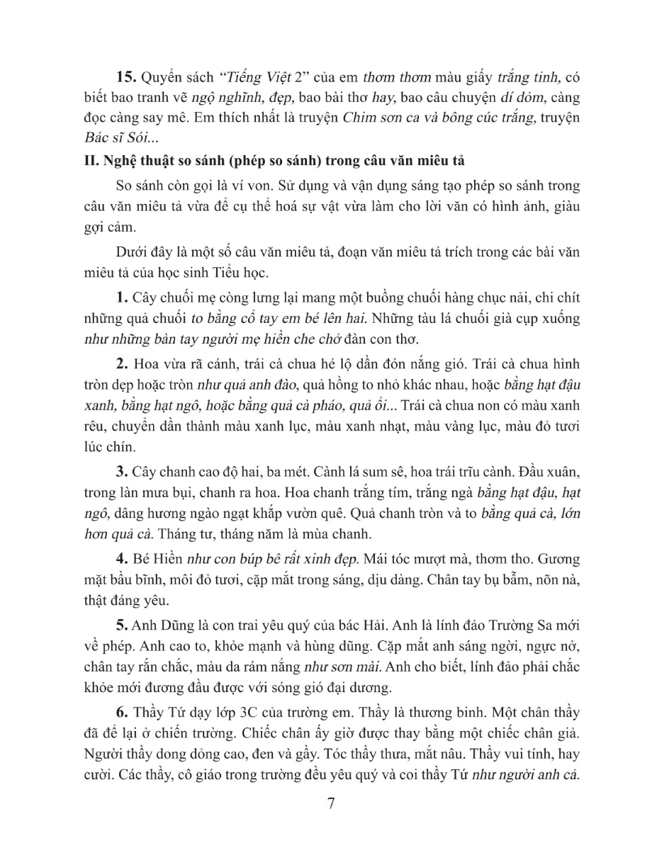 Văn miêu tả và văn kể chuyện là phần trọng tâm của môn Tiếng Việt Tiểu học. Ngoài việc học thầy, học bạn, học ở trên lớp, học tập và quan sát sự vật trong cuộc sống, các em còn cần biết học trong sách và làm theo sách. Đọc những bài văn hay trên sách báo cũng không kém phần quan trọng. Có biết tự đọc, tự học mới thành tài.
