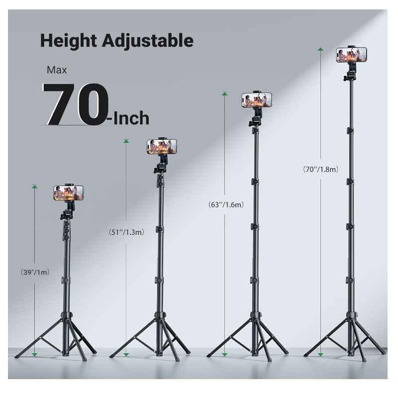 Chân máy điện thoại di động UGREEN có chiều cao có thể điều chỉnh, kéo dài từ 19 inch đến tối đa 67 inch, lý tưởng để phát trực tiếp, quay video và chụp ảnh.