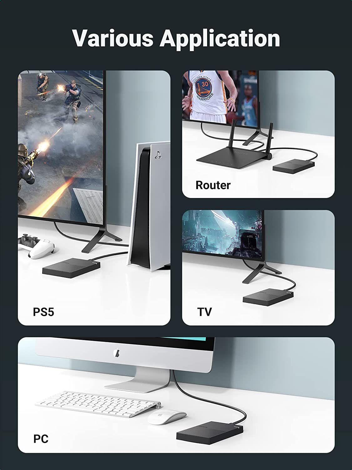 1. Data Transfer: 5Gbps(Max.) 2. Supported Drives: 2.5"/3.5" SATA HDD/SDD up to 12TB 3. Compatible System:Windows 98/2000/XP/Vista/7/8/8.1, Mac OS X 4. The SATA HDD SSD USB 3 Cable is built to travel. The compact and