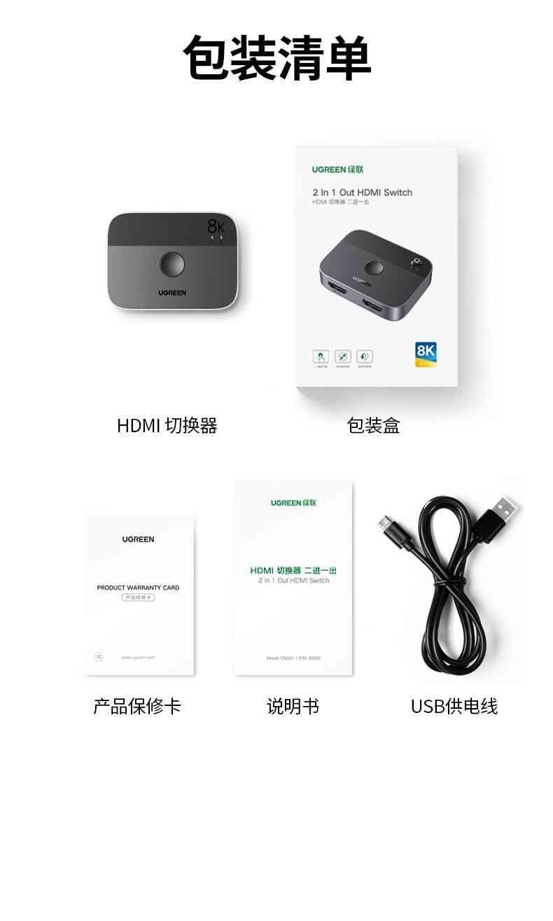 ✨Ugreen UG90385CM561TK 8k@60Hz Bộ gộp HDMI 2 vào 1 ra chuẩn HDMI 2.1 - HÀNG CHÍNH HÃNG
