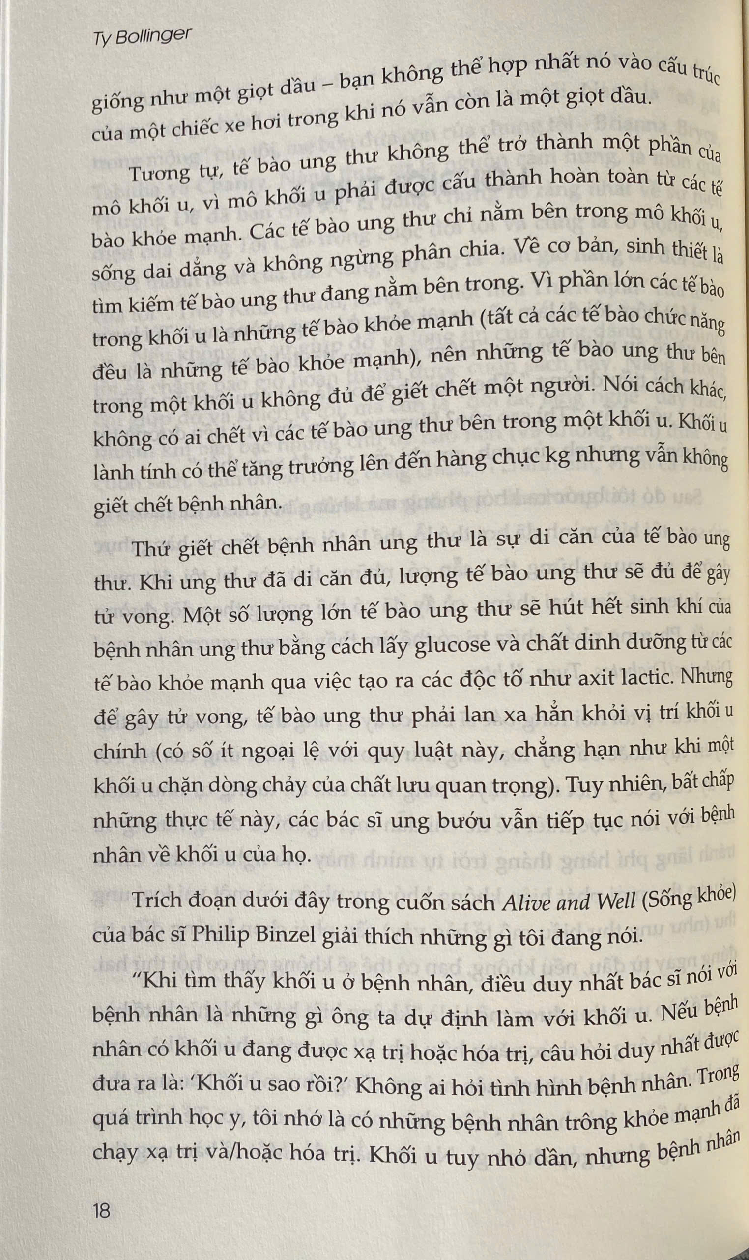 Cuốn sách có nhiều thông tin quan trọng được sắp xếp theo cách rất dễ đọc, bạn không thể tìm thấy lượng thông tin phong phú như thế ở bất cứ nơi nào khác. Theo tôi, cho đến thời điểm này, đây là cuốn sách đánh giá đầy đủ và thích đáng nhất các liệu pháp điều t. rị ung thư thay thế. Cuốn sách đã được tái bản sáu lần ở Mỹ, nhận được sự hưởng ứng của đông đảo độc giả tại Mỹ và các nước khác trên thế giới. Vì khối kiến thức to lớn trong nội dung cuốn sách có thể mang những điều bổ ích đến cho bệnh nhân trong điều t. rị ung thư và cho tất cả những người khỏe mạnh trong phòng ngừa bệnh ung thư, bạn nên đọc cuốn sách này.