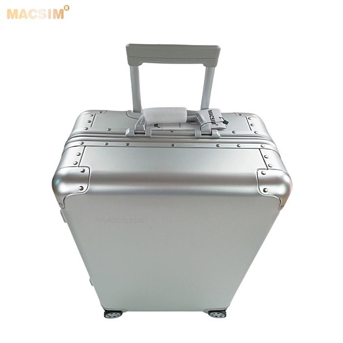 Toàn bộ thân vỏ vali Macsim làm bằng hợp kim nhôm A6063 làm cho vali rất nhẹ, độ đàn hồi cao, chống ăn mòn, chịu được tải trọng lớn.