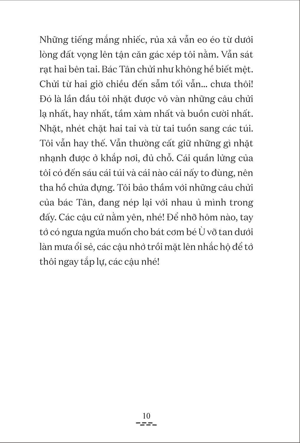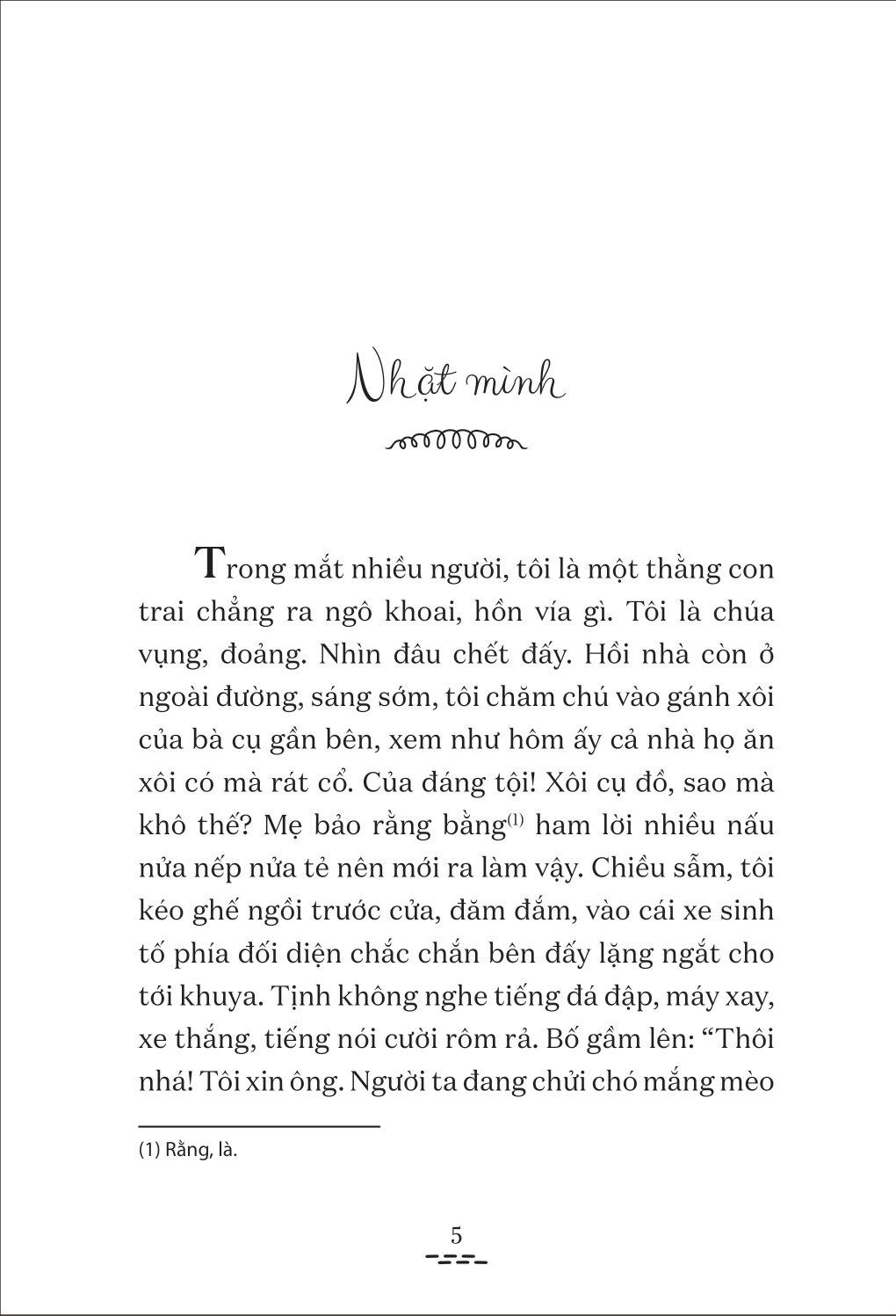 Cậu NHẶT khoảnh khắc vụng về bố cắt mái tóc “bum bê” tròn ủng cho bà với những câu nói đùa đầy yêu thương, NHẶT chuyện vụn vặt nấu bát canh hoa thiên lí, om nồi ốc chuối đậu… ăm ắp không khí gia đình đầm ấm, NHẶT sự vụng về “cười đến đau cả mép” của chị Thương “ư ơ ngờ ương”… NHẶT mọi thứ, để làm hành trang.