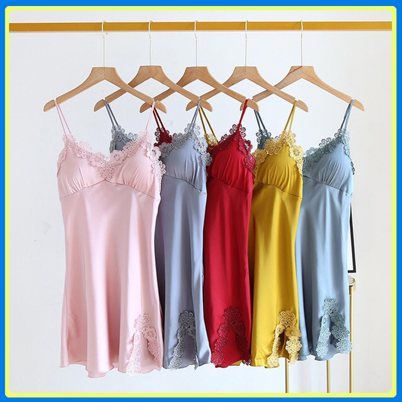 Váy ngủ lụa hai dây sexy chất satin mềm mịn lên form cực kì sang Váy ngủ mặc mát size dưới 60kg