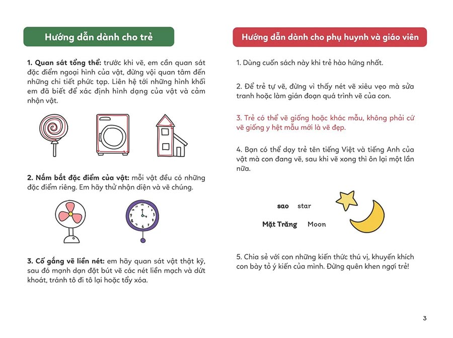 Phát triển khả năng sáng tạo: Cuốn sách giúp trẻ tự do sáng tạo, thể hiện cá tính qua việc tô màu và vẽ các đồ vật, đồ dùng quen thuộc.