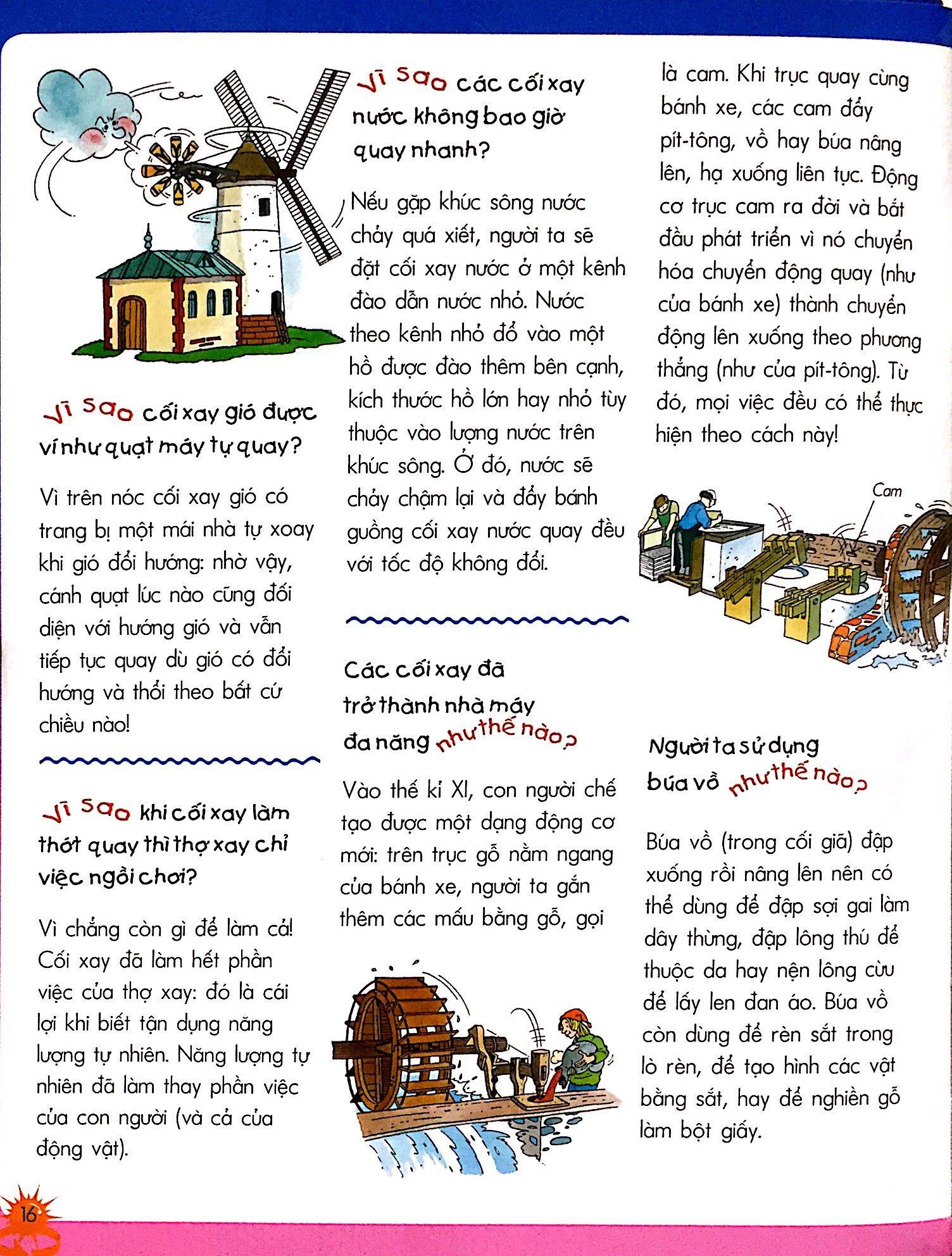 Những cối xay đầu tiên được sử dụng như thế nào? Sáng chế nồi áp suất đã thay đổi thế giới như thế nào? Than được dùng để sản xuất điện như thế nào? Vì sao tàu chở dầu thường có hai lớp vỏ tàu? Vì sao năng lượng hạt nhân lại phát nổ lớn đến như vậy? Vì sao phân cũng có thể trở thành nguồn năng lượng?... Đáp án cho những câu hỏi trên và 300 câu hỏi khác được tập hợp trong cuốn sách này, tạo nên một kho kiến thức tuyệt vời cho cả trẻ em và người lớn.