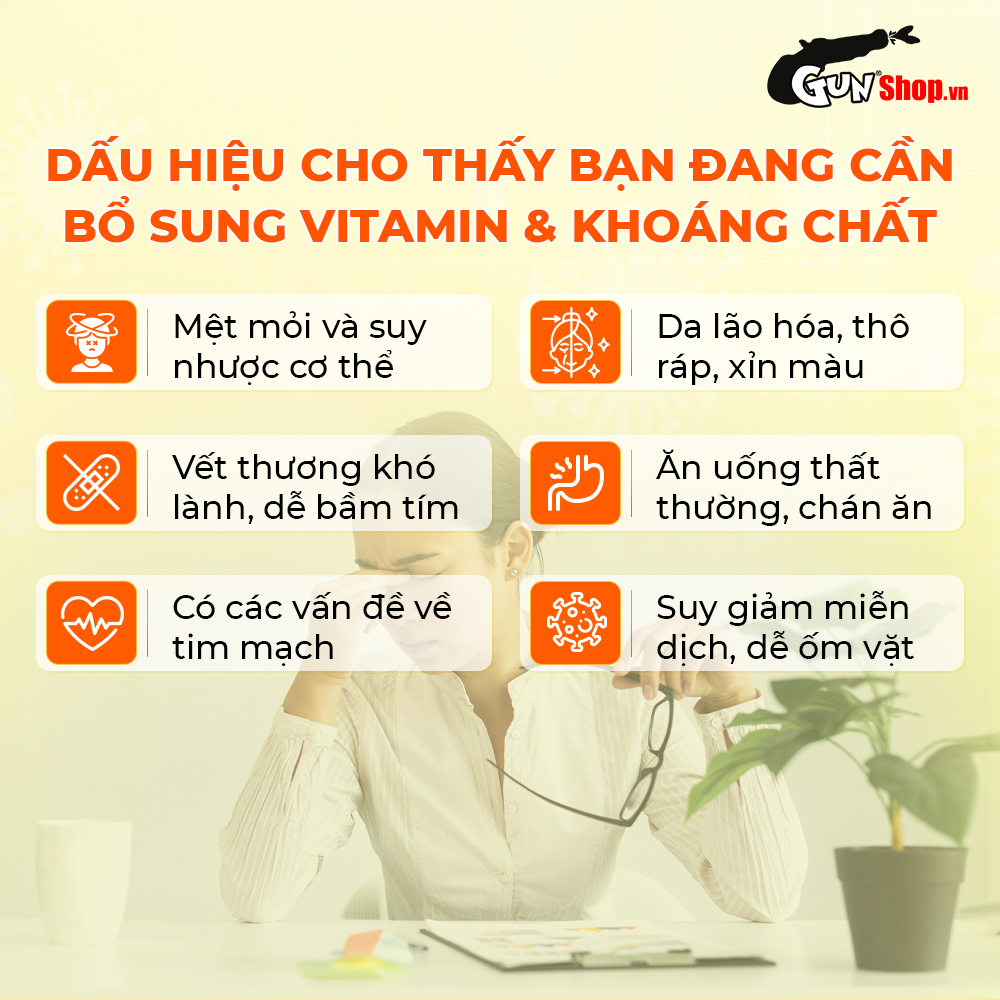 CÔNG DỤNG - Bổ sung 24 vitamin và khoáng chất thiết yếu cho cơ thể. - Hỗ trợ bồi bổ và tăng cường sức khỏe cho các trường hợp chán ăn, mệt mỏi, suy nhược cơ