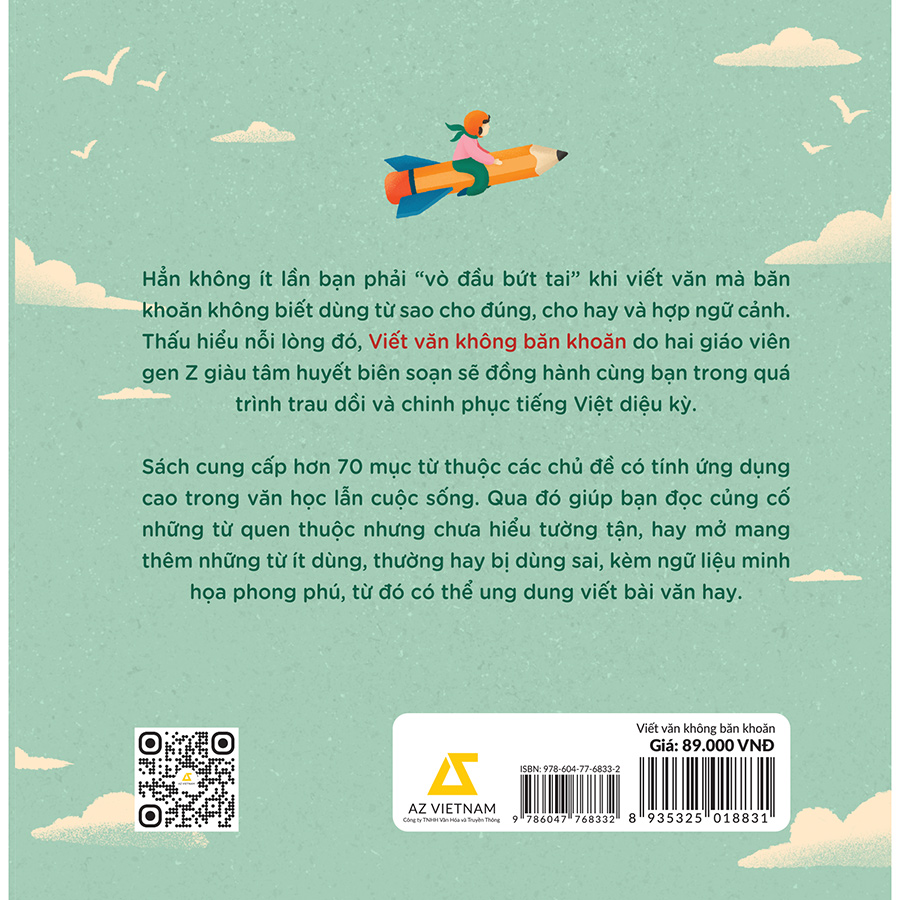 Viết Văn Không Băn Khoăn được biên soạn và chấp bút bởi hai cô giáo dạy văn, những người luôn trong tâm thế tìm tòi, khám phá các con chữ nên nội dung sách phong phú và chuẩn xác. Sách được chia thành hai phần: