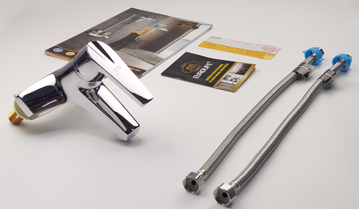 Bộ sản phẩm được đóng gói trong túi vải cotton, hộp màu riêng của Eurolife. Bộ sản phẩm đầy đủ bao gồm : Thân vòi Lavabo, 1 bát gắn, 2 roong cao su, 2 dây cấp 60cm, 1 phiếu bảo hành chính hãng.