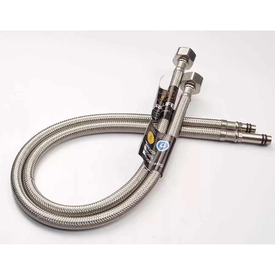 Dây cấp dài 50cm chịu nhiệt cao. Thân dây bằng Inox, 2 đầu ren được đúc bằng Inox SUS 304 bền bỉ. Hai dây hoàn toàn có thể chịu nhiệt độ cao lên đến 100 độ C