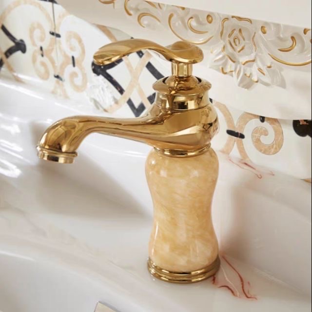 ✨Vòi rửa mặt nóng lạnh mạ vàng bọc đá ngọc thân thấp GR8762B (Sang trọng, quý phái)