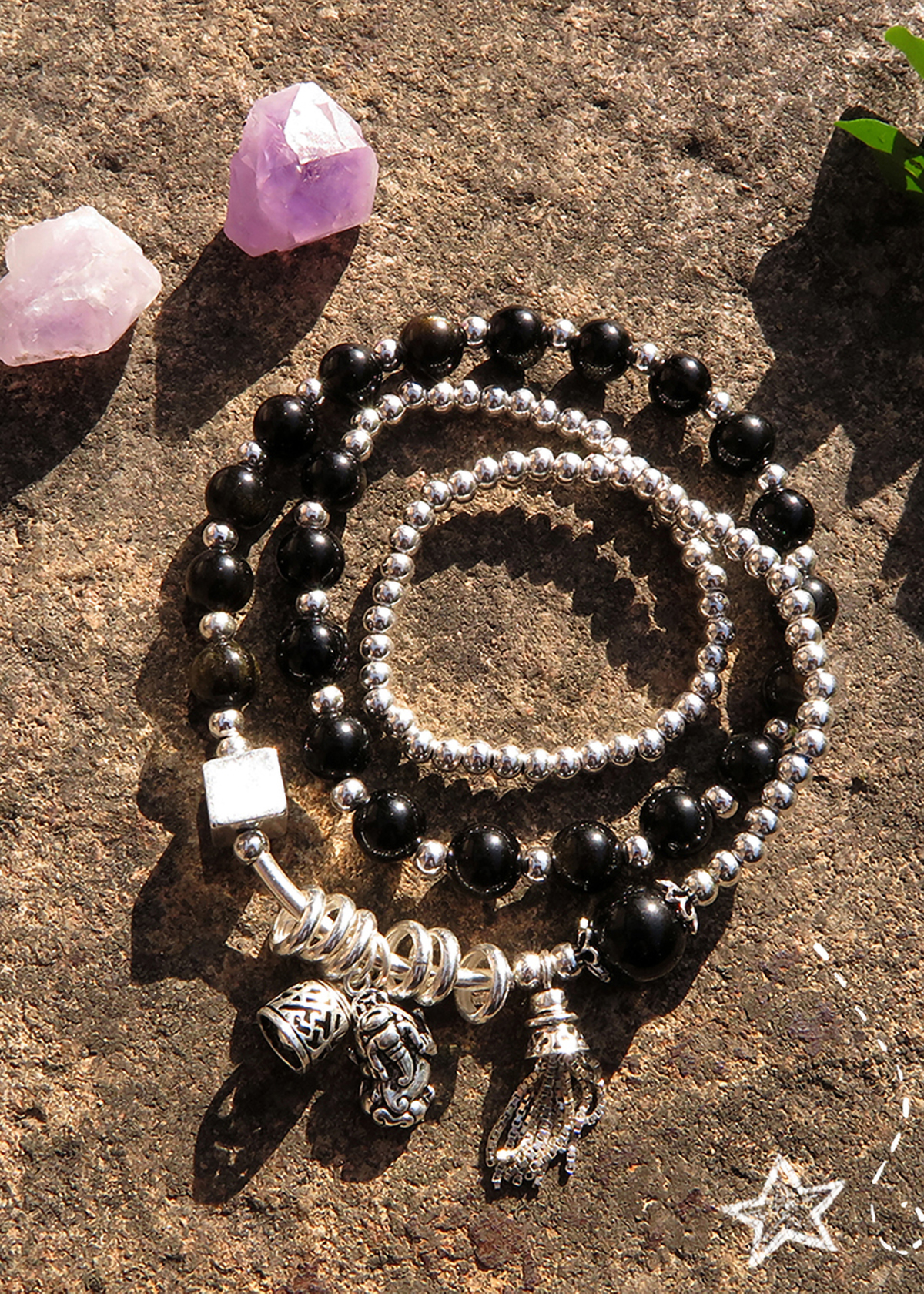 - Vòng Tay Laliz Mệnh Thổ ,Kim Đá Thạch Anh Tóc Nâu Mix Đá Ưu Linh Charm Ngôi Sao Bạc - TAR.03 được làm từ loài đá tự nhiên kết hợp Bạc 925, không chỉ