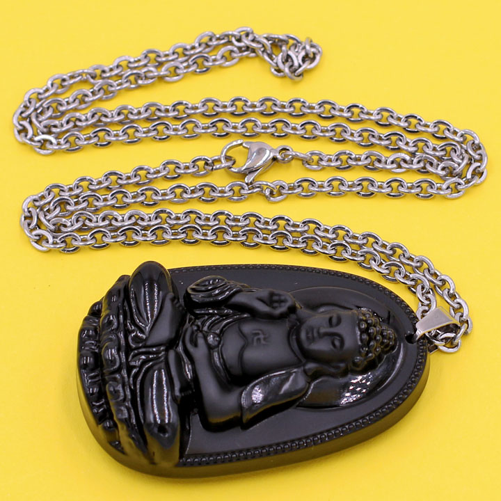 ✨Vòng cổ mặt Phật A Di Đà - thạch anh đen 4.3cm DITTEO7 - dây inox - tuổi Tuất, Hợi