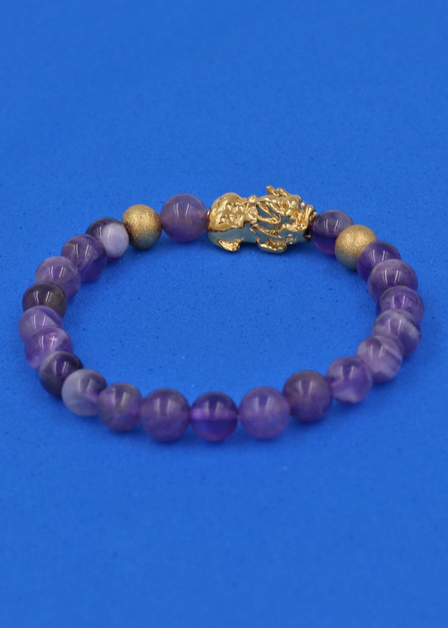 ✨Vòng đeo tay Thạch Anh Tím Than 6 ly cẩn Tỳ Hưu inox vàng VTAITTHHBV6 - hợp mệnh Hỏa, mệnh Thổ