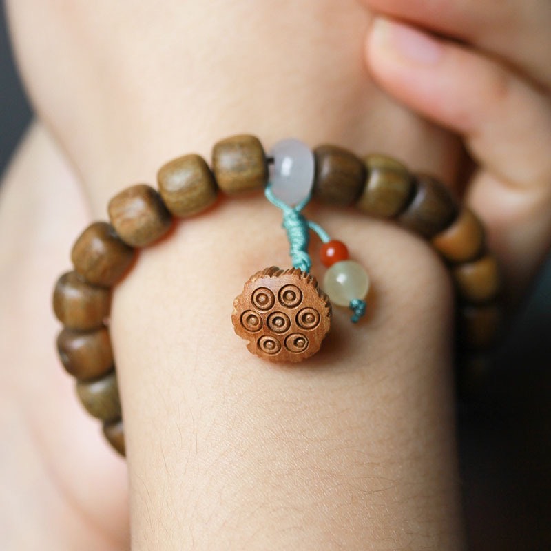 ✨VÒNG TAY CHUỖI HẠT PHẬT GIÁO CÓ ĐÀI SEN BẰNG GỖ ĐÀN HƯƠNG XANH ĐỔI MÀU