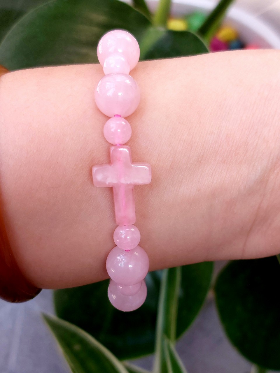 Vòng tay chuỗi mân côi thời trang đá thạch anh hồng thiên nhiên cho Nữ công sở làm trang sức