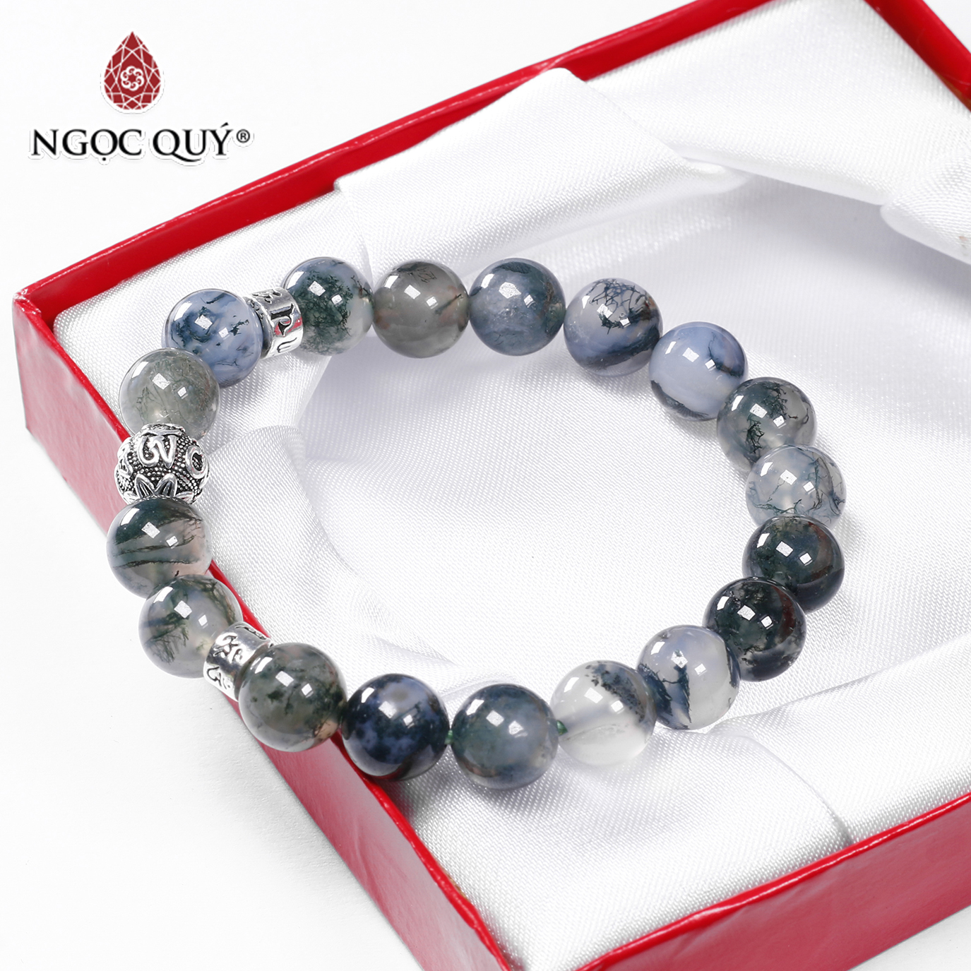 VÒNG TAY ĐÁ BĂNG NGỌC THỦY TẢO HUYẾT: Băng Ngọc Thủy Tảo là một biến thể nhà Mã Não chứa những kết tinh màu xanh rêu rất kì lạ, do tác động khắc nghiệt của