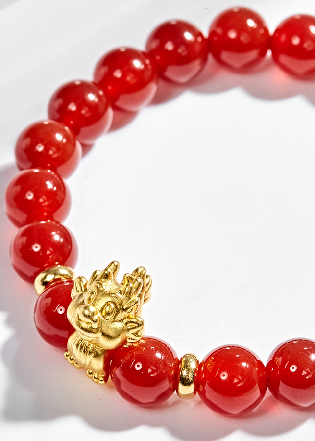 Vòng Tay Đá Mã Não Đỏ Charm Tuổi Thìn Bạc Mạ Vàng 24K Ngọc Quý Gemstones: Phù hợp với người Mệnh Hỏa – Mệnh Thổ