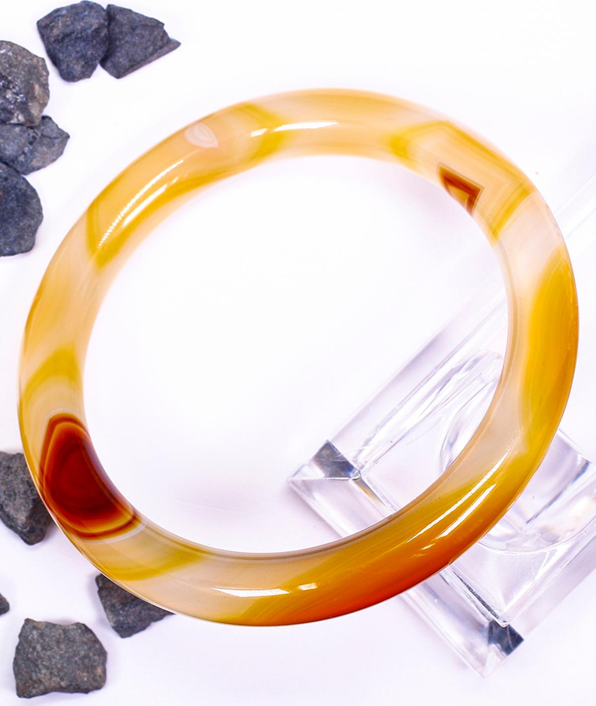 Vòng tay đá mã não vàng sở hữu vẻ đẹp rực rỡ đầy mê hoặc, như những ngọn lửa nóng bỏng lan tỏa khắp dòng sông Agate, là biểu tượng của sự đam mê, nồng cháy và lòng nhiệt huyết.
