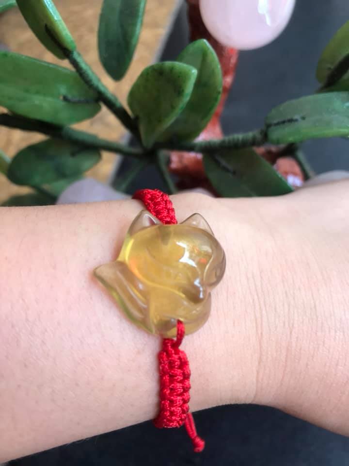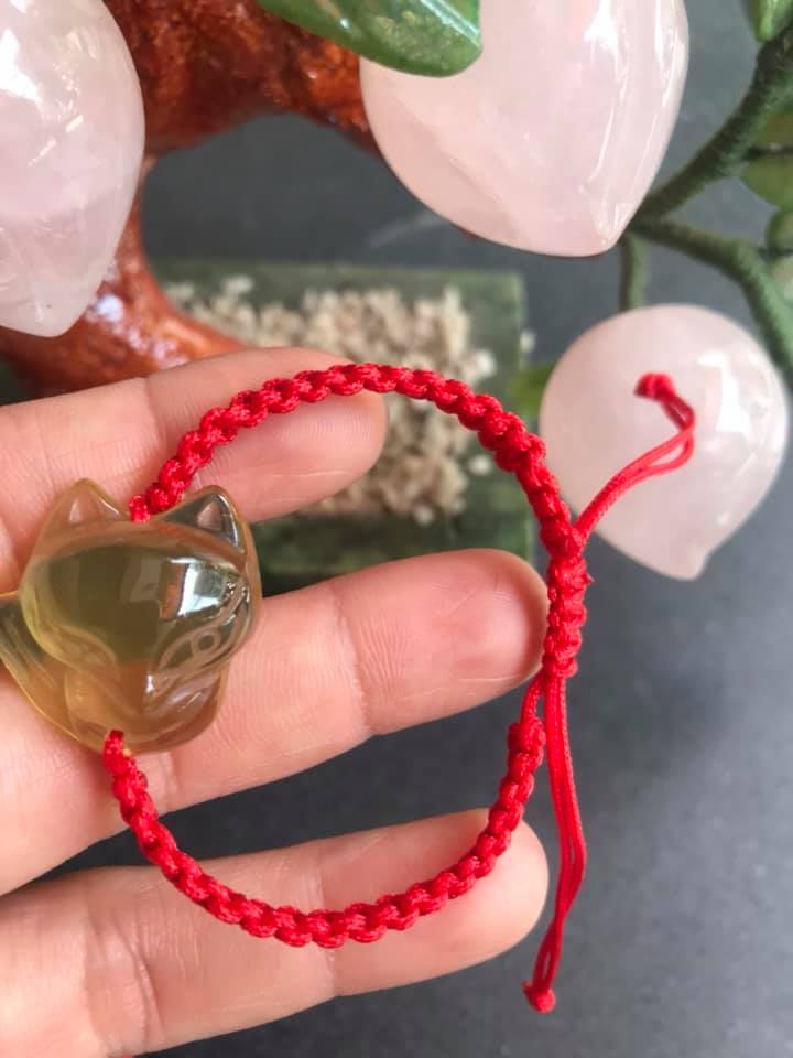 VÒNG TAY HANDMADE HỒ LY ĐÁ THẠCH ANH VÀNG TỰ NHIÊN DÂY ĐỎ