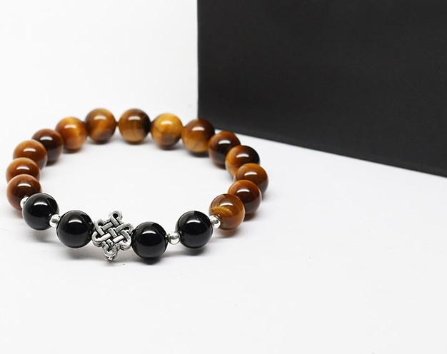 Vòng tay phong thuỷ đá Mắt Hổ Vàng Tâm 8 ly mix Khoen Mã Não by Anqlo là sản phẩm được chế tác tinh xảo, có độ hoàn thiện cao bởi các nghệ nhân lâu