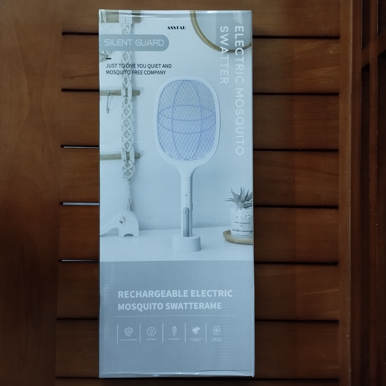 - Đèn ngủ: với ánh sáng dịu nhẹ từ chiếc vợt bắt muỗi tự động này thì thay thế được luôn cho đèn ngủ ạ Nguyên lý của vợt muỗi thông minh : Muỗi rất bị thu hút bởi ánh sáng, do vậy trong phòng tối mà chỉ có vợt bắt muỗi phát ra ánh sáng nên muỗi sẽ bị thu hút bay hết về chỗ có ánh sáng. Do vậy khi bay vào vùng ánh sáng sẽ bị điện của vợt muỗi giật chết. Ngoài ra nếu chúng ta mắc màn hoặc muốn tìm muỗi thì vẫn dùng như vợt bắt muỗi bình thường nhé! THÔNG SỐ KỸ THUẬT: Vật liệu: nhựa ABS và các chi tiết điện tử Kích thước: 54 x 22cm/21.26 x 8.66in (bao gồm cả đế sạc) Trọng lượng: 360g (không bao gồm đế sạc) Dung tích pin: 1200 mAh, sạc đầy từ 2-3h Công suất tiêu thụ điện: 2W Cổng sạc: USB Sạc đầu vào: DC5V-1A Nguồn ánh sáng: 360-400nm LED HƯỚNG DẪN SỬ DỤNG: Lần đầu tiên sử dụng, sạc đầy thiết bị trong khoảng 4-6 tiếng. CHẾ ĐỘ VỢT MUỖI:
