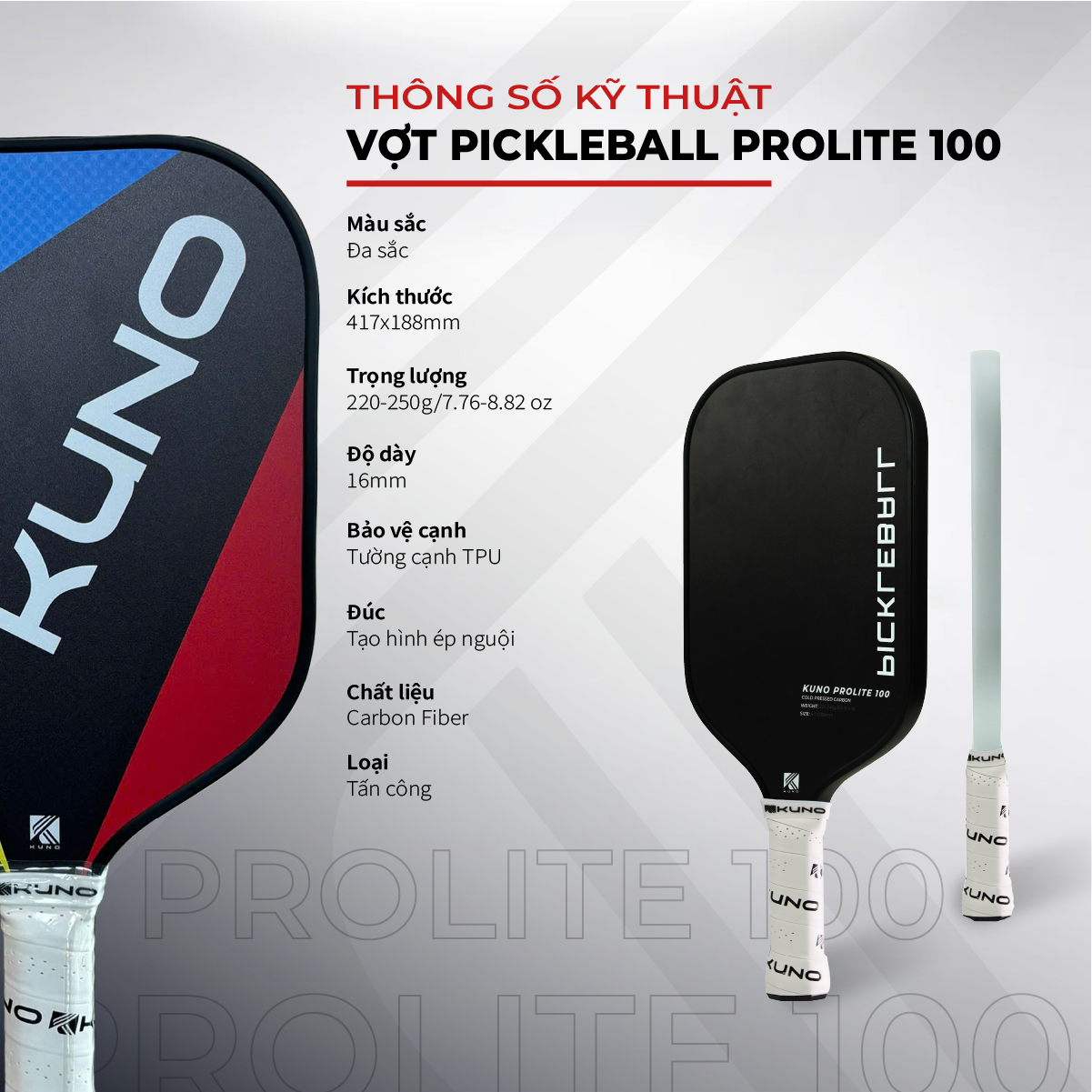 Giới thiệu sản phẩm: Vợt Pickleball Kuno Prolite 100 Chính Hãng, lối đánh tấn công, phòng thủ, sức chịu lên tới 70kg