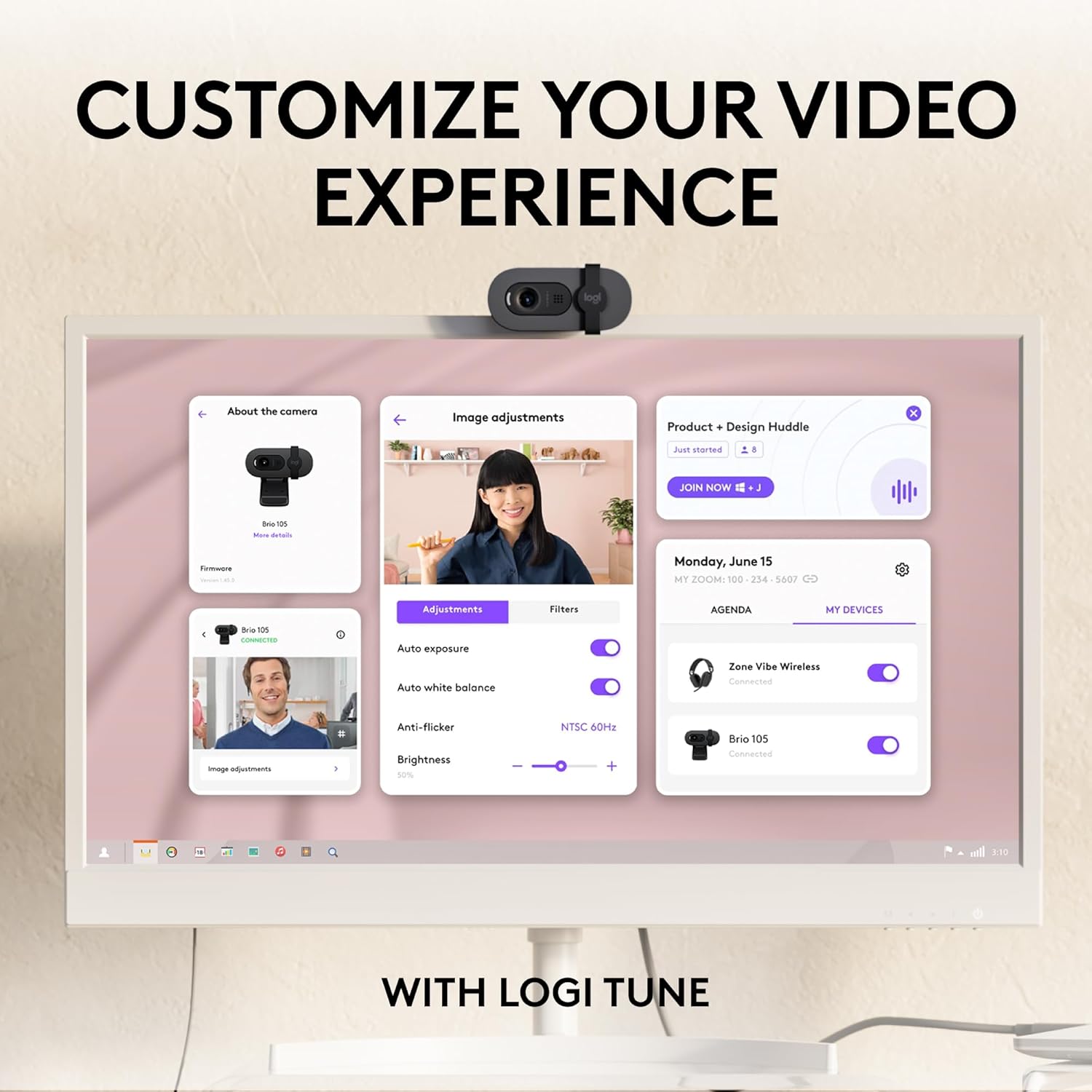 Webcam Logitech Brio 500 Xuất hiện trong mọi cuộc họp video với cảm giác tự tin, thu hút và chân thực CHÍNH LÀ HÌNH ẢNH ĐẸP NHẤT CỦA BẠN Cảm giác tự tin trong mọi